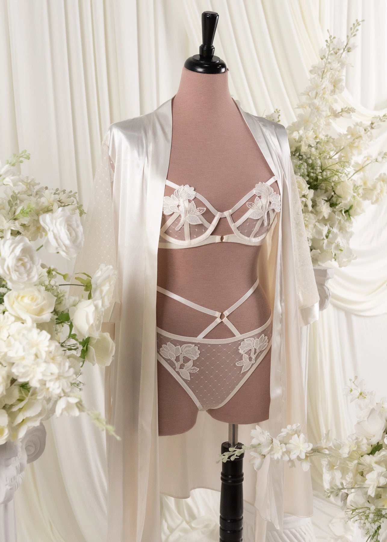 - Mentionables Satin and Diamond Mesh Robe for that breezy goddess moment.