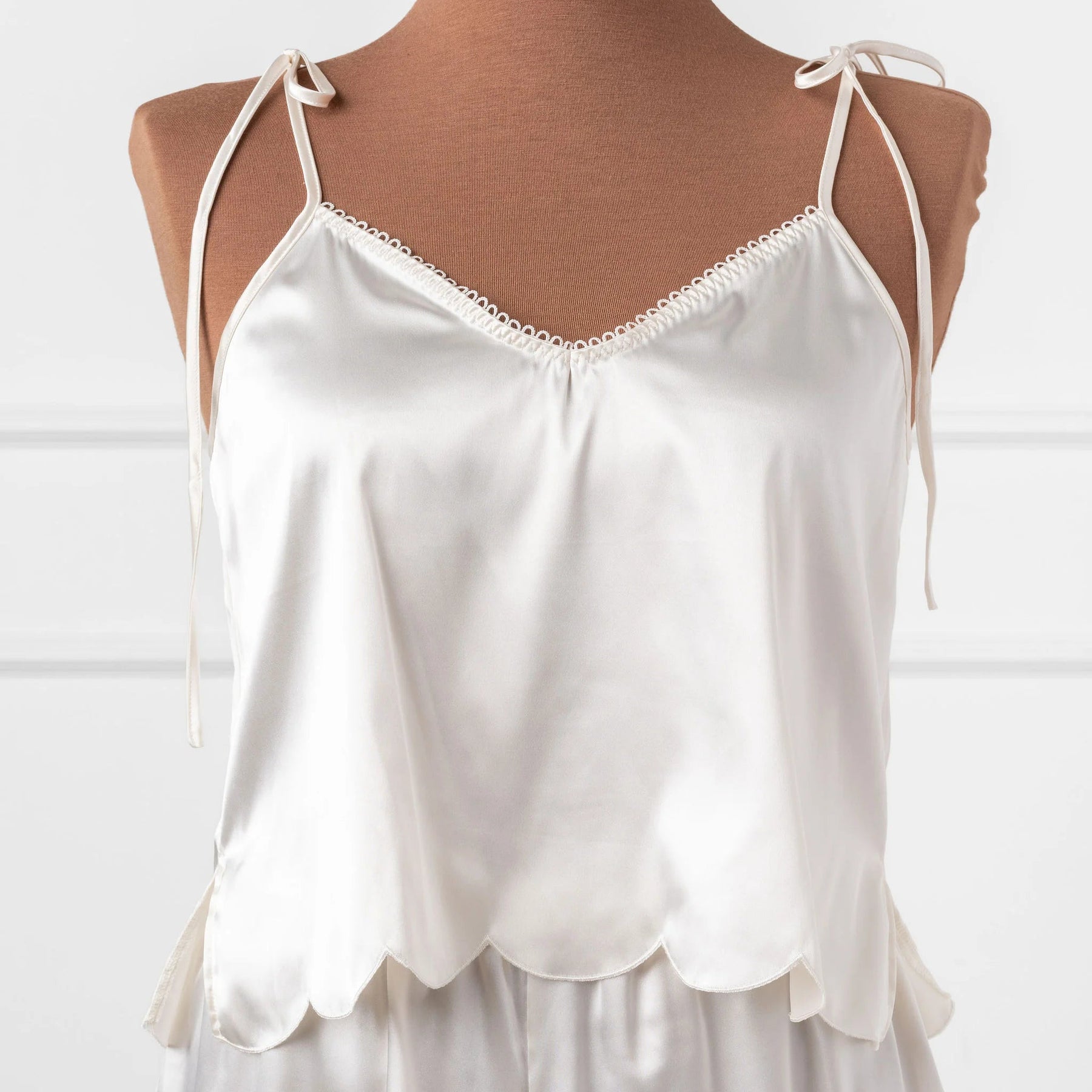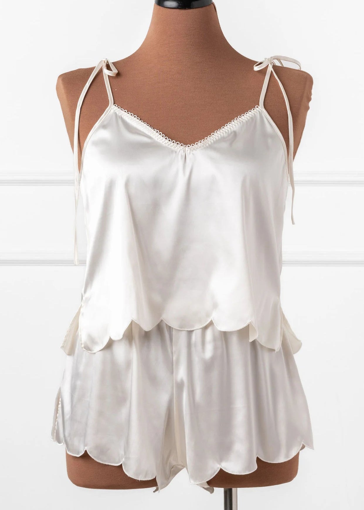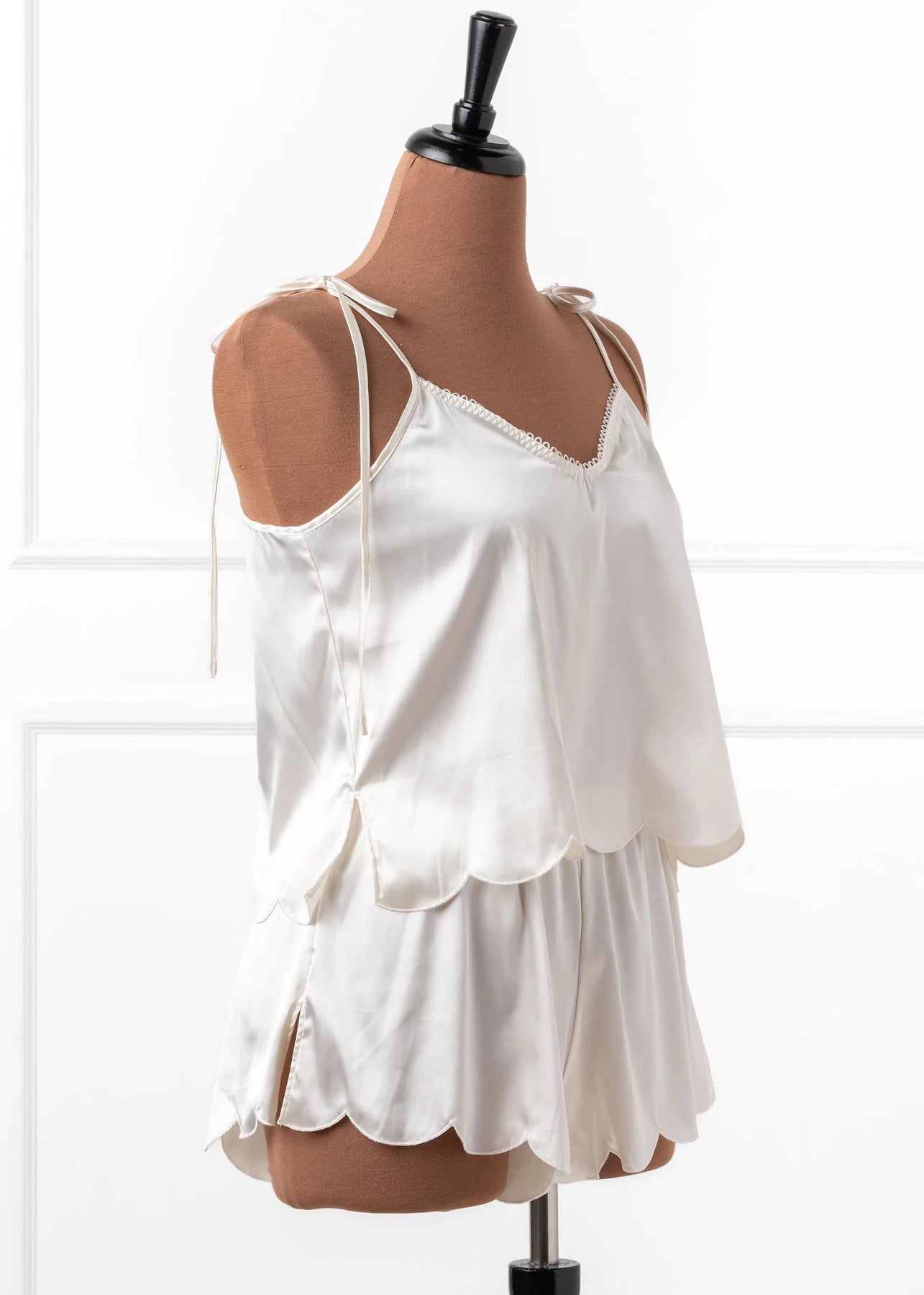 - Satin Scalloped Cami and Shorts for a look that’s sleek and sultry.