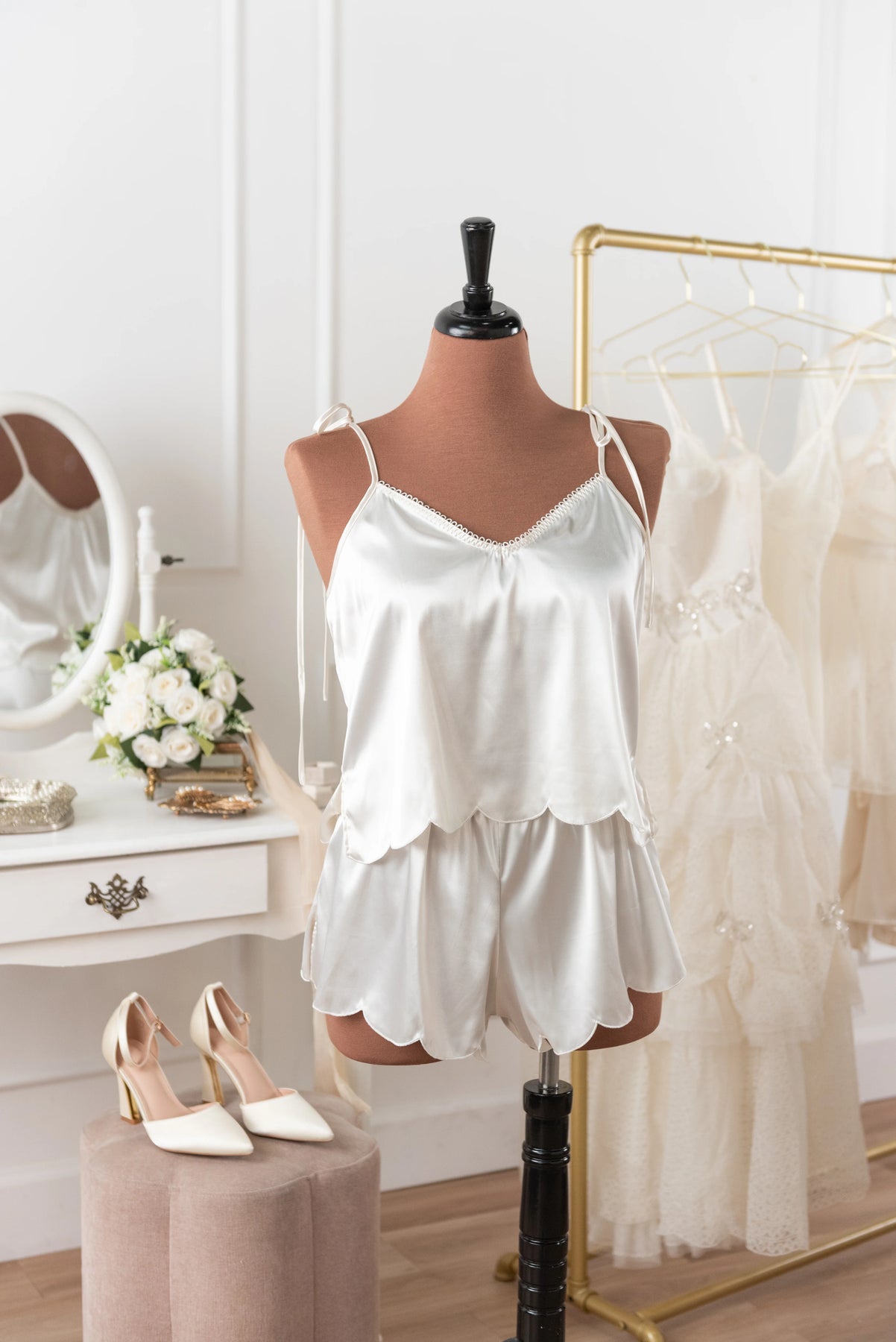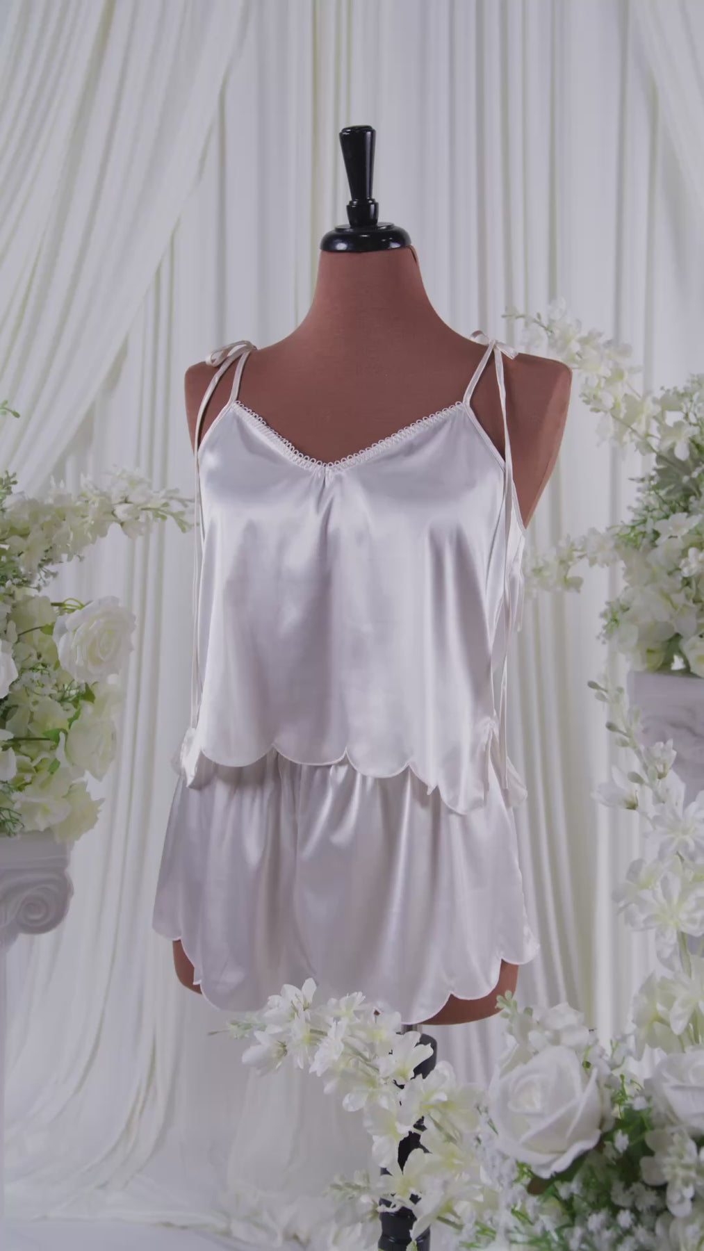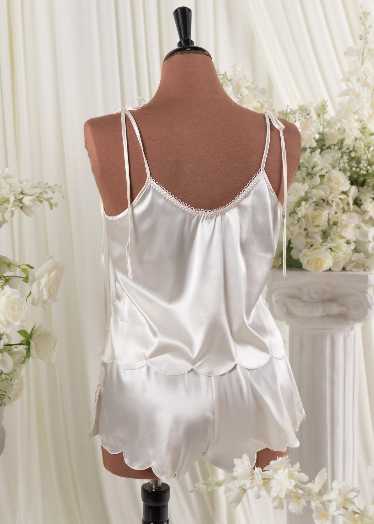 - Satin Scalloped Cami and Shorts for a look that’s sleek and sultry.