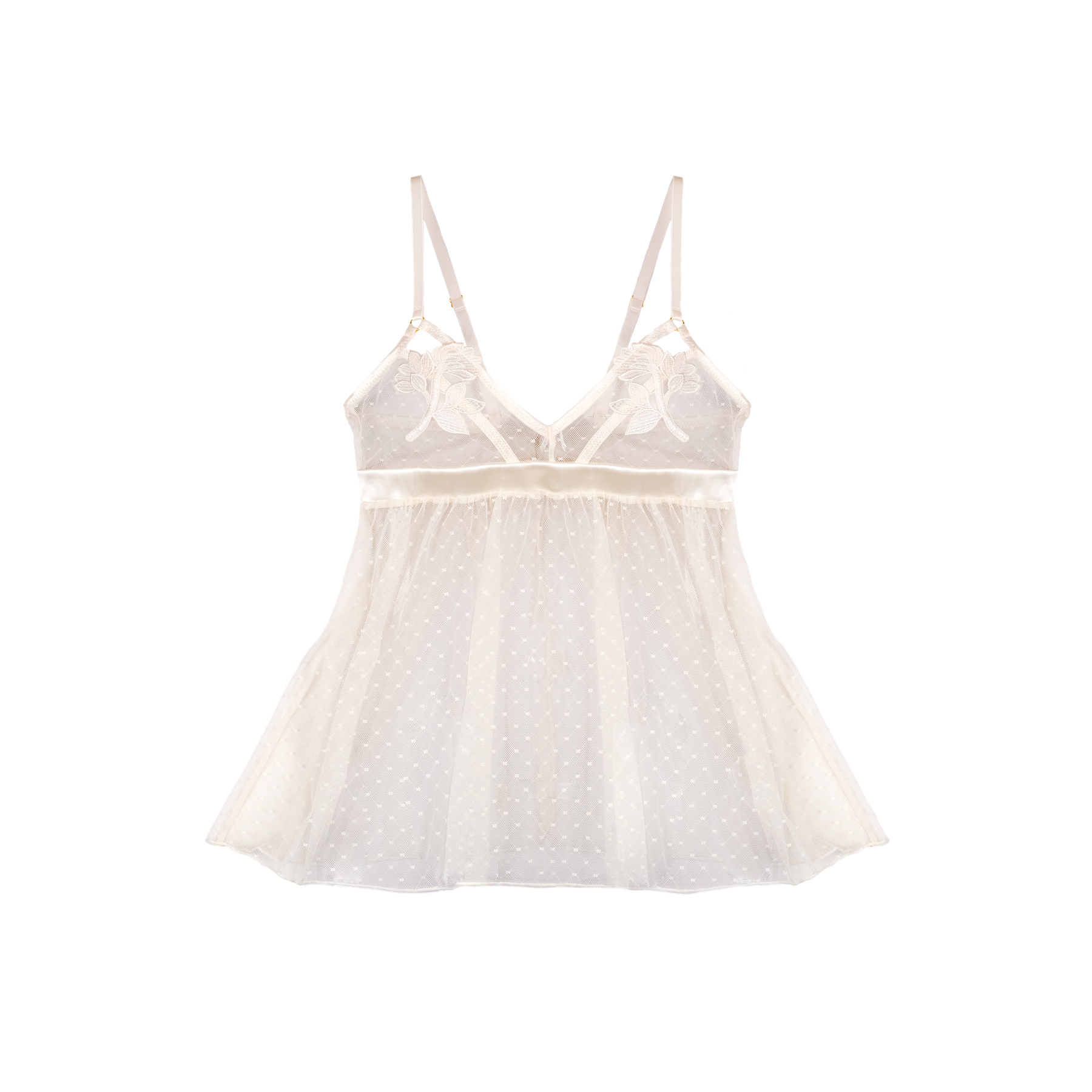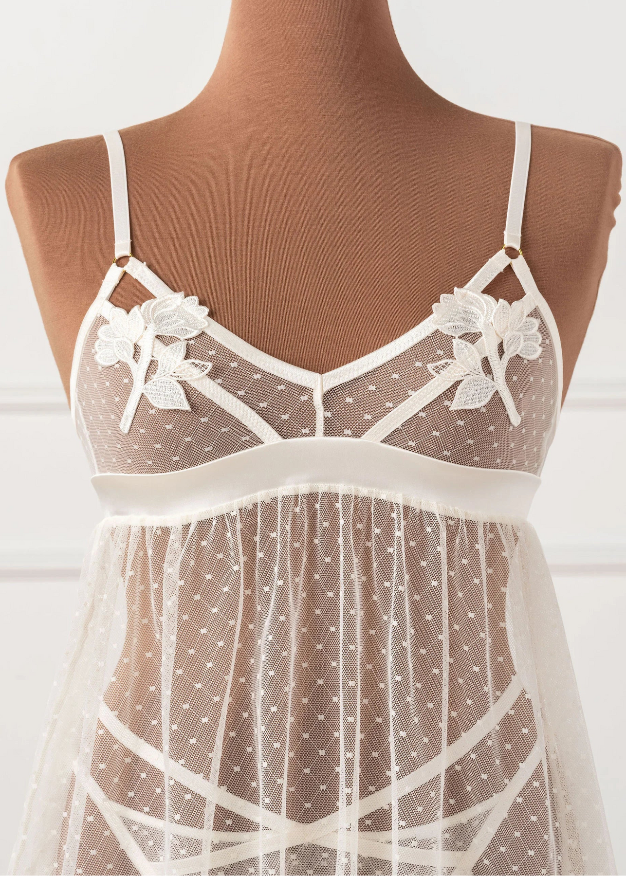 - Appliqué & Diamond Mesh Babydoll in pearl, for a sweet, ethereal look.