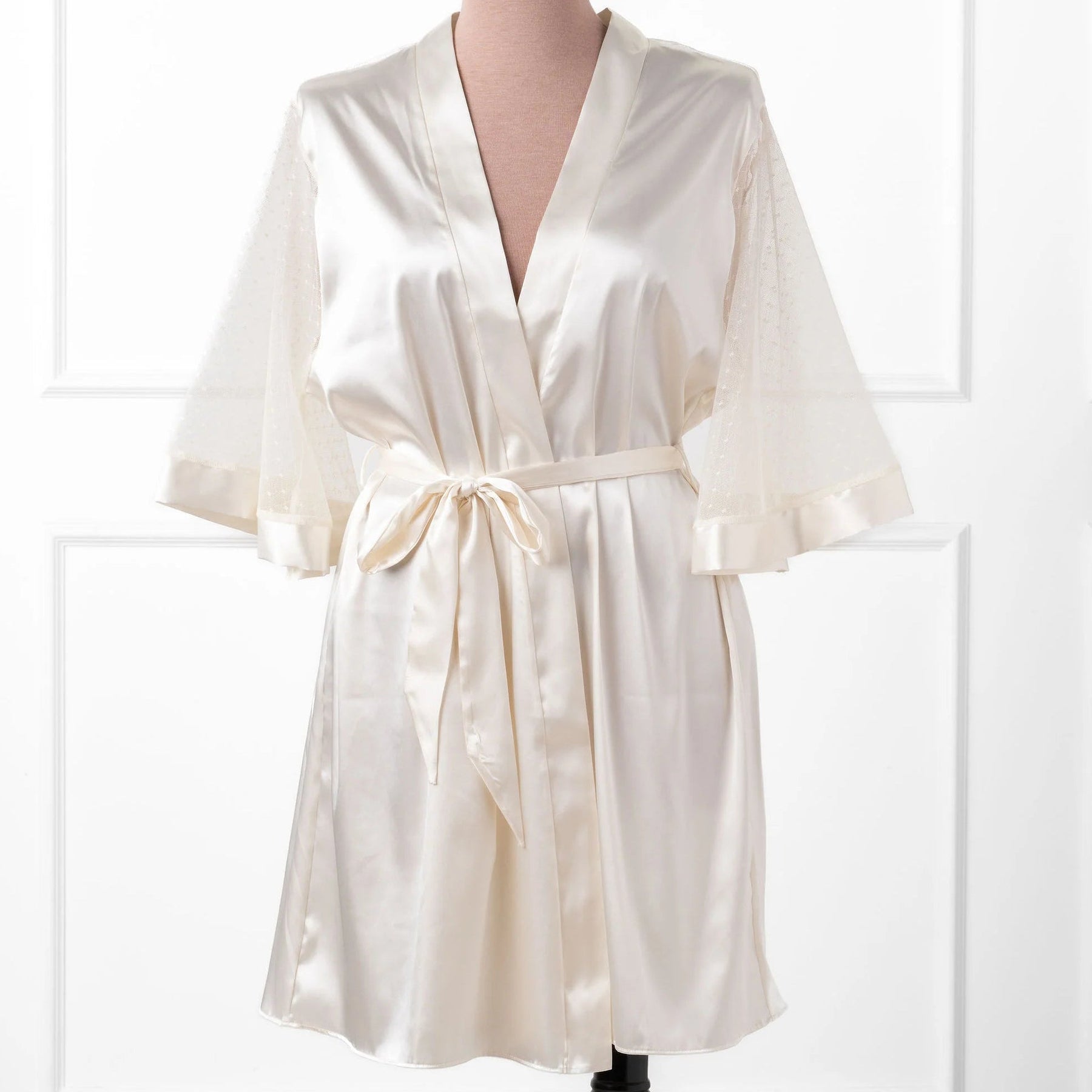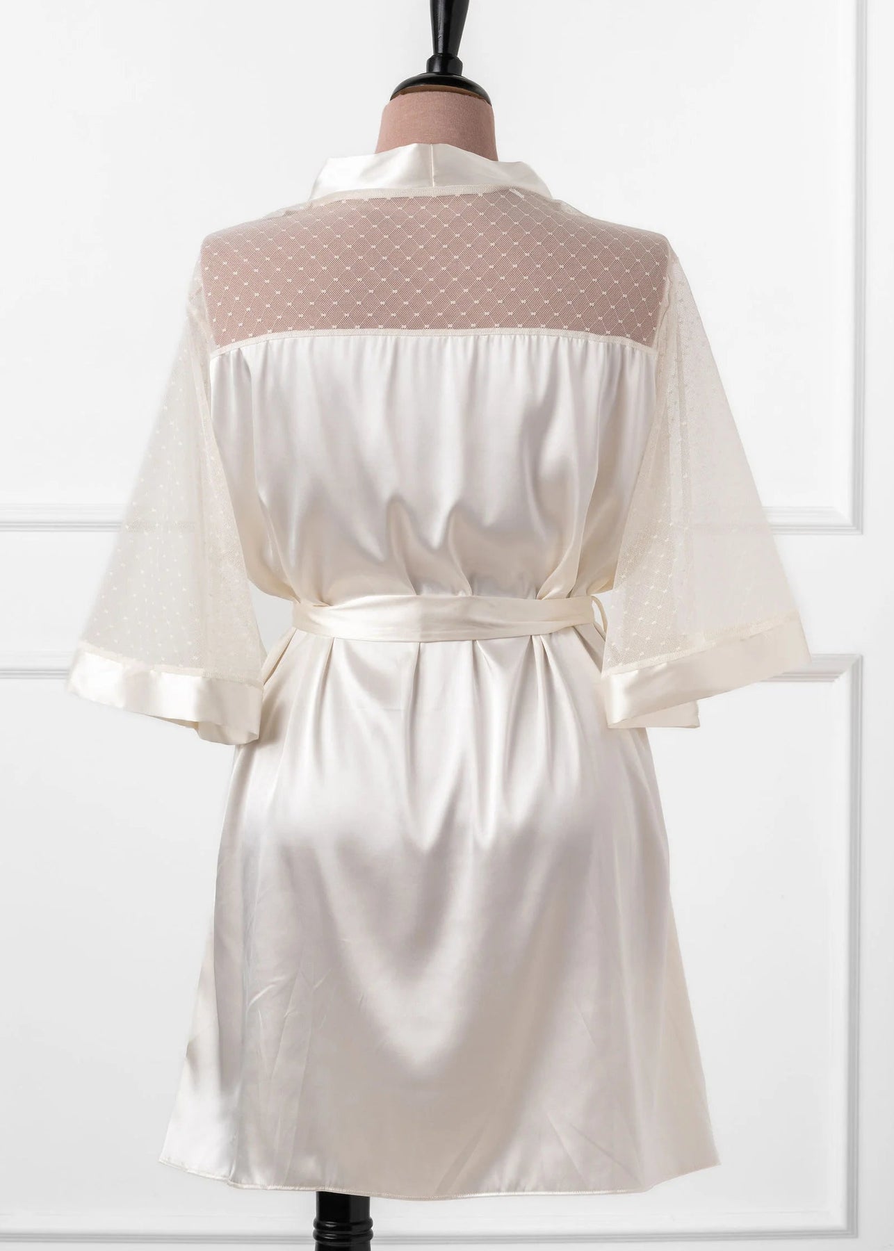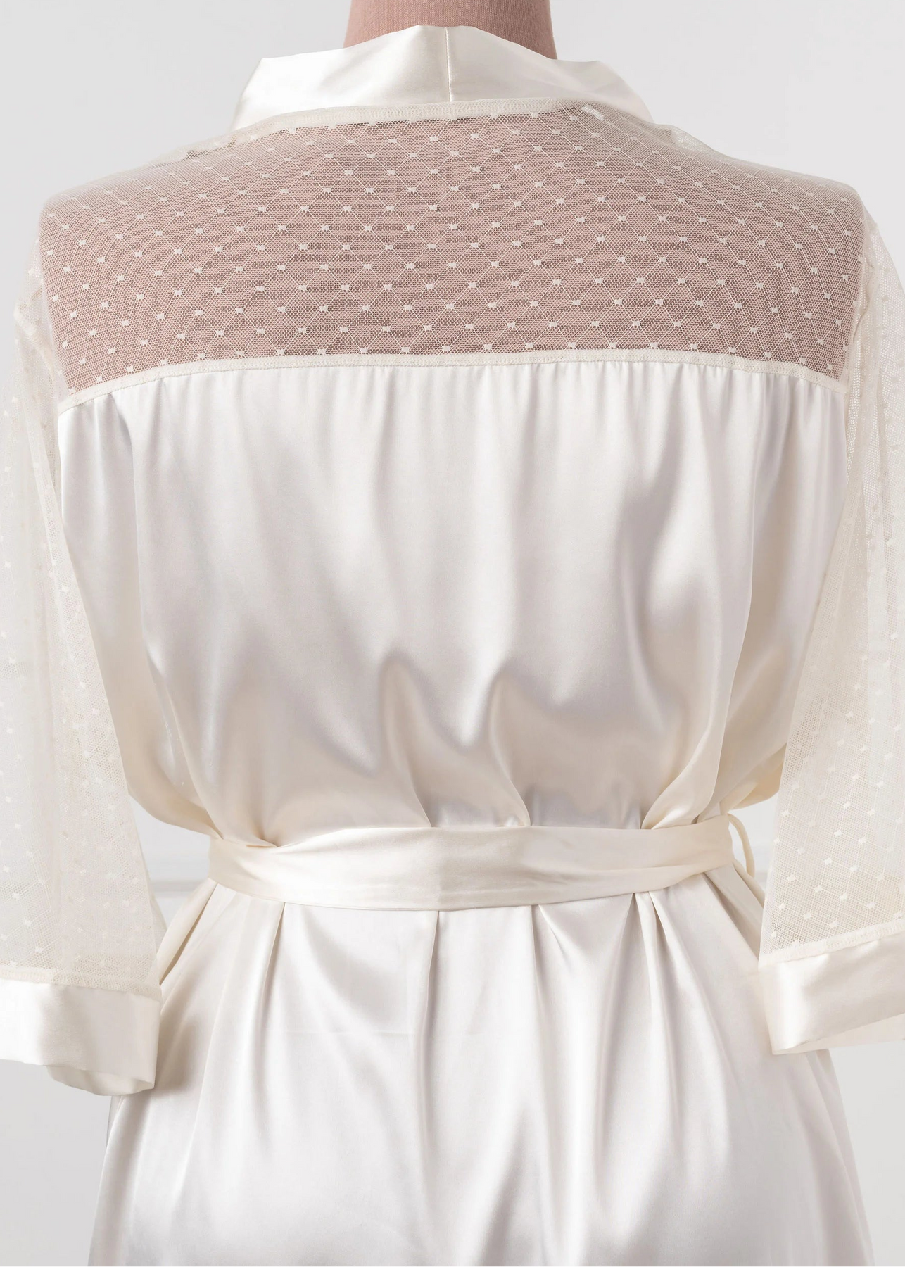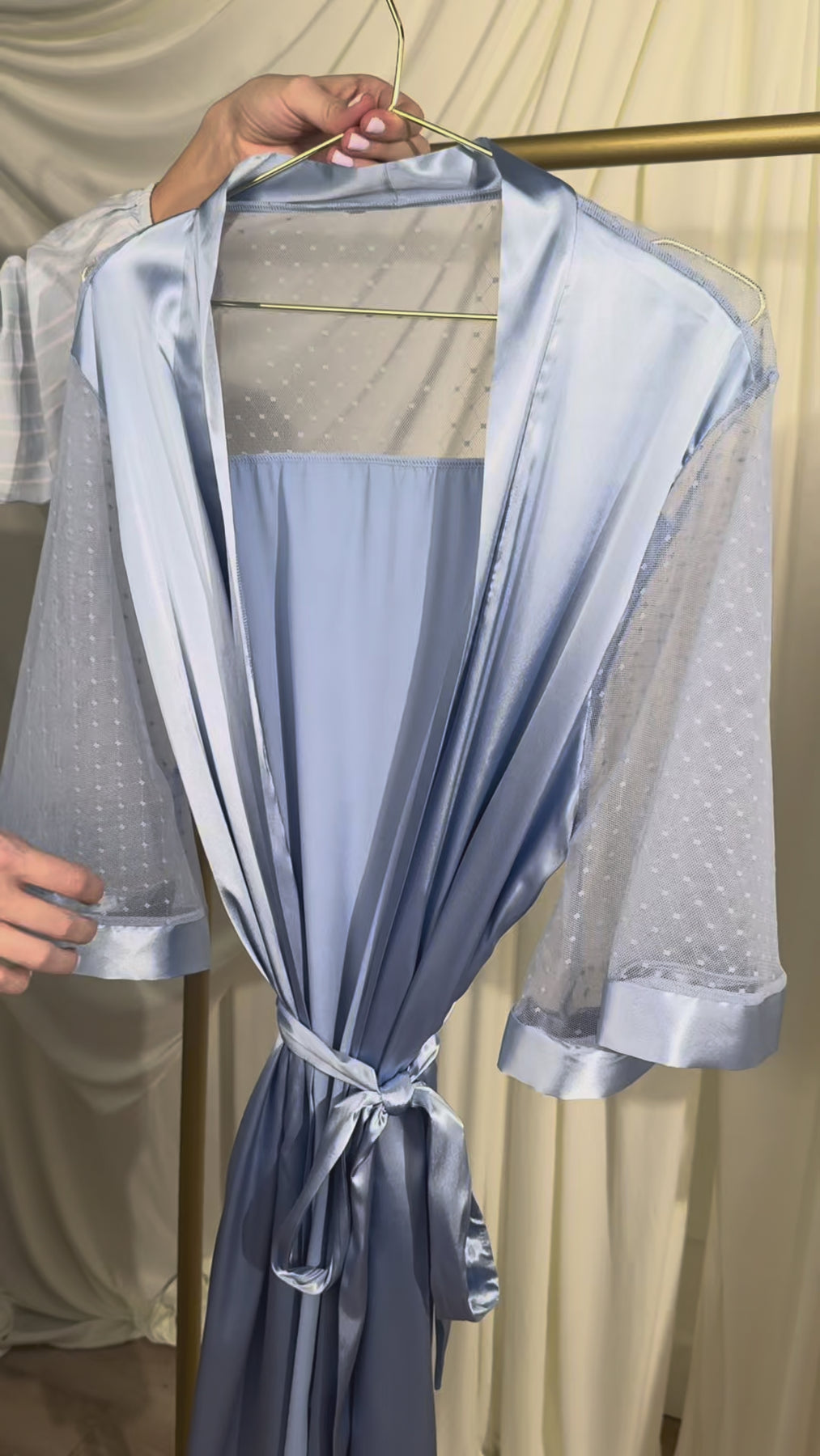 - Satin Diamond & Mesh Robe in sky blue takes the look to the next level of timeless elegance.