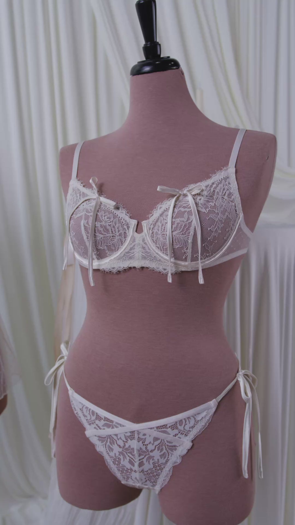 - Rose Pink Lace Bow Bralette and Panty for a dreamy pink hue with a touch of sweetness.