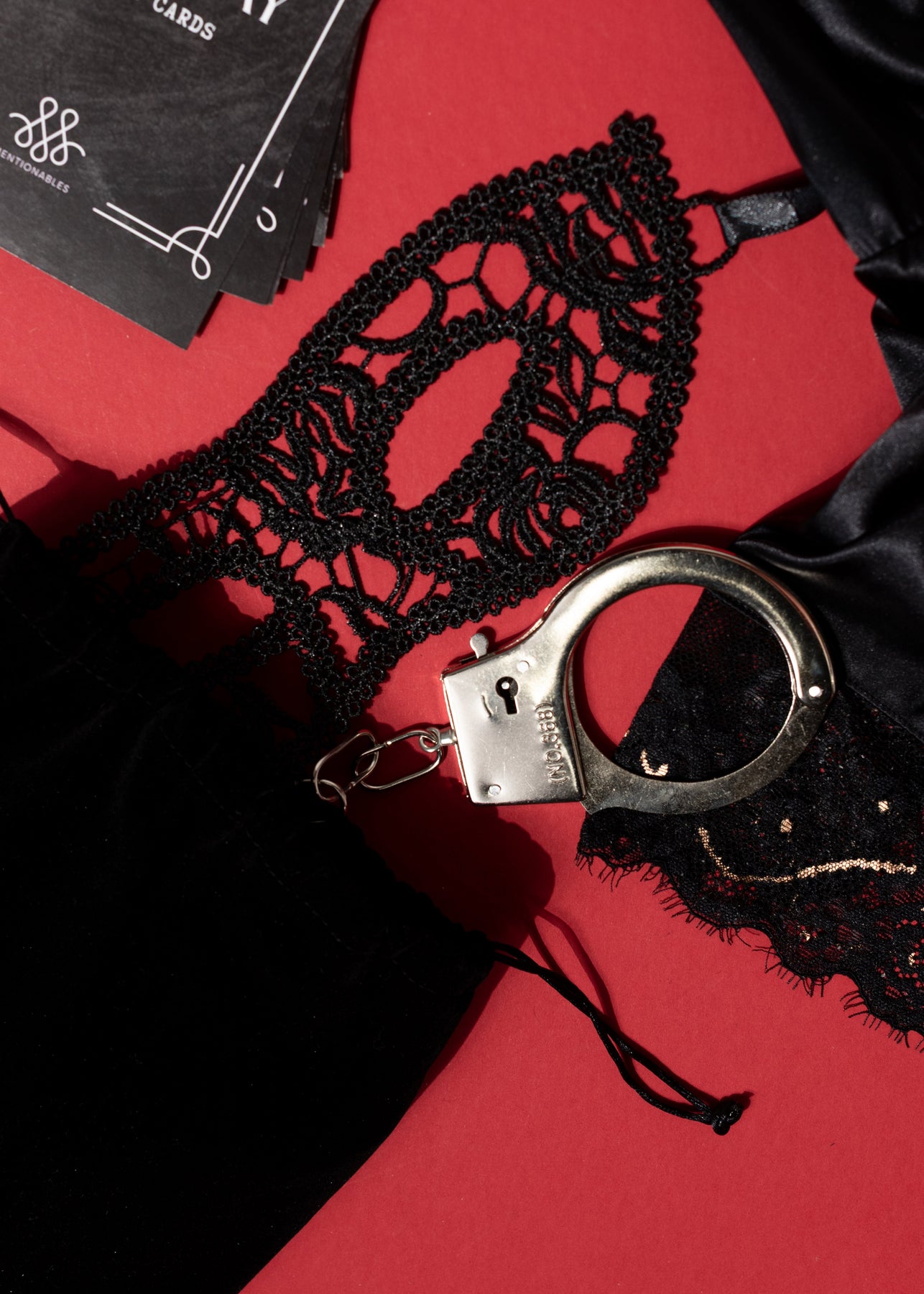 1 Mystery Velvet Bag – Contains 4 surprise props to help bring your fantasies to life. (Think: flirty, fun, and ready to stir up some trouble—in all the right ways)