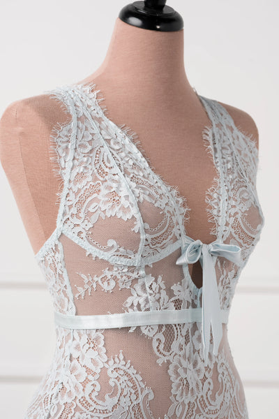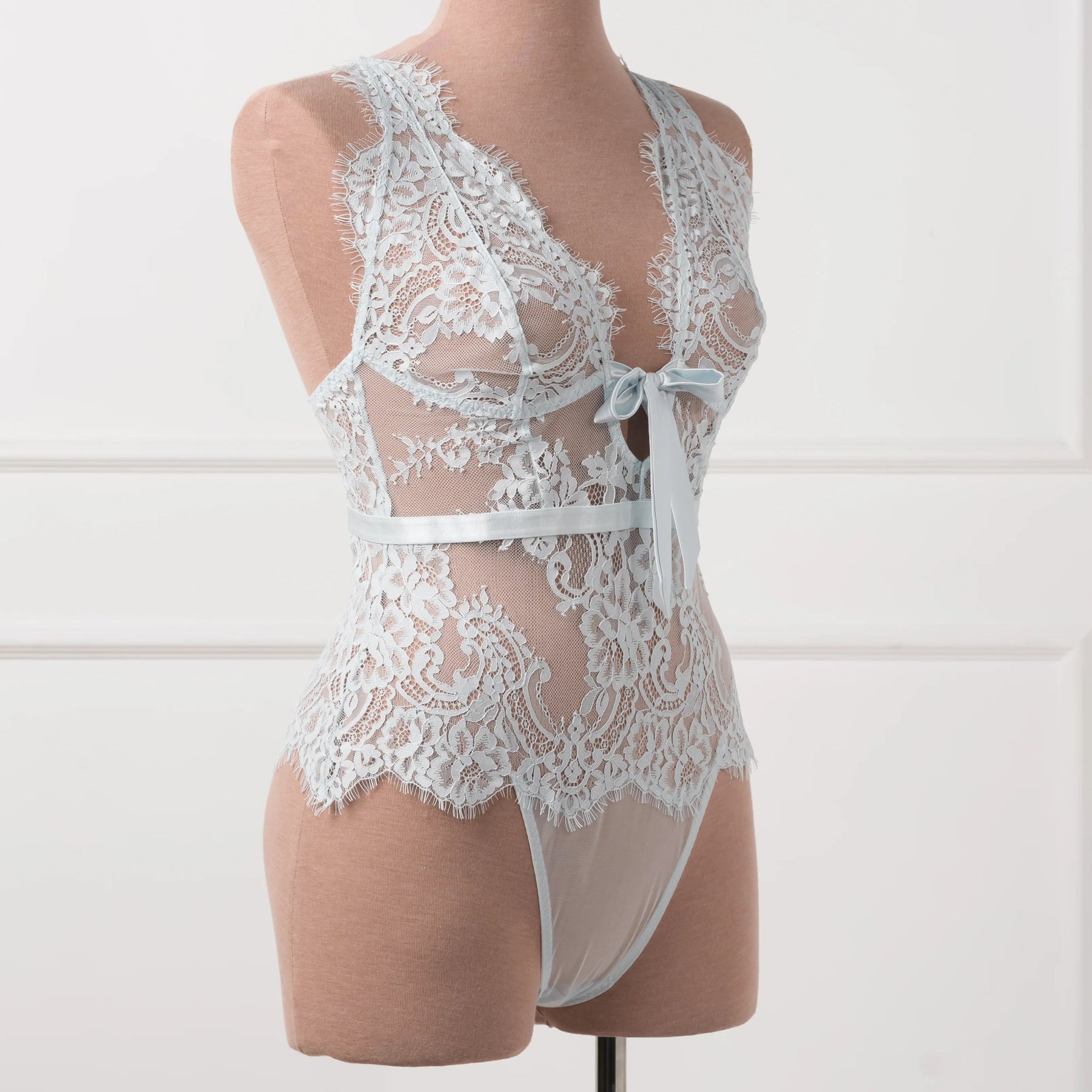 This beautiful babe features elegant eyelash lace in an ultra-feminine silhouette that hugs all the right places. The adjustable satin bow at the bust creates a closer fit that is even more fun to untie! A sexy keyhole back will make you love the way it looks no matter the angle and the super sexy high leg line and the thong back will give you legs for days!