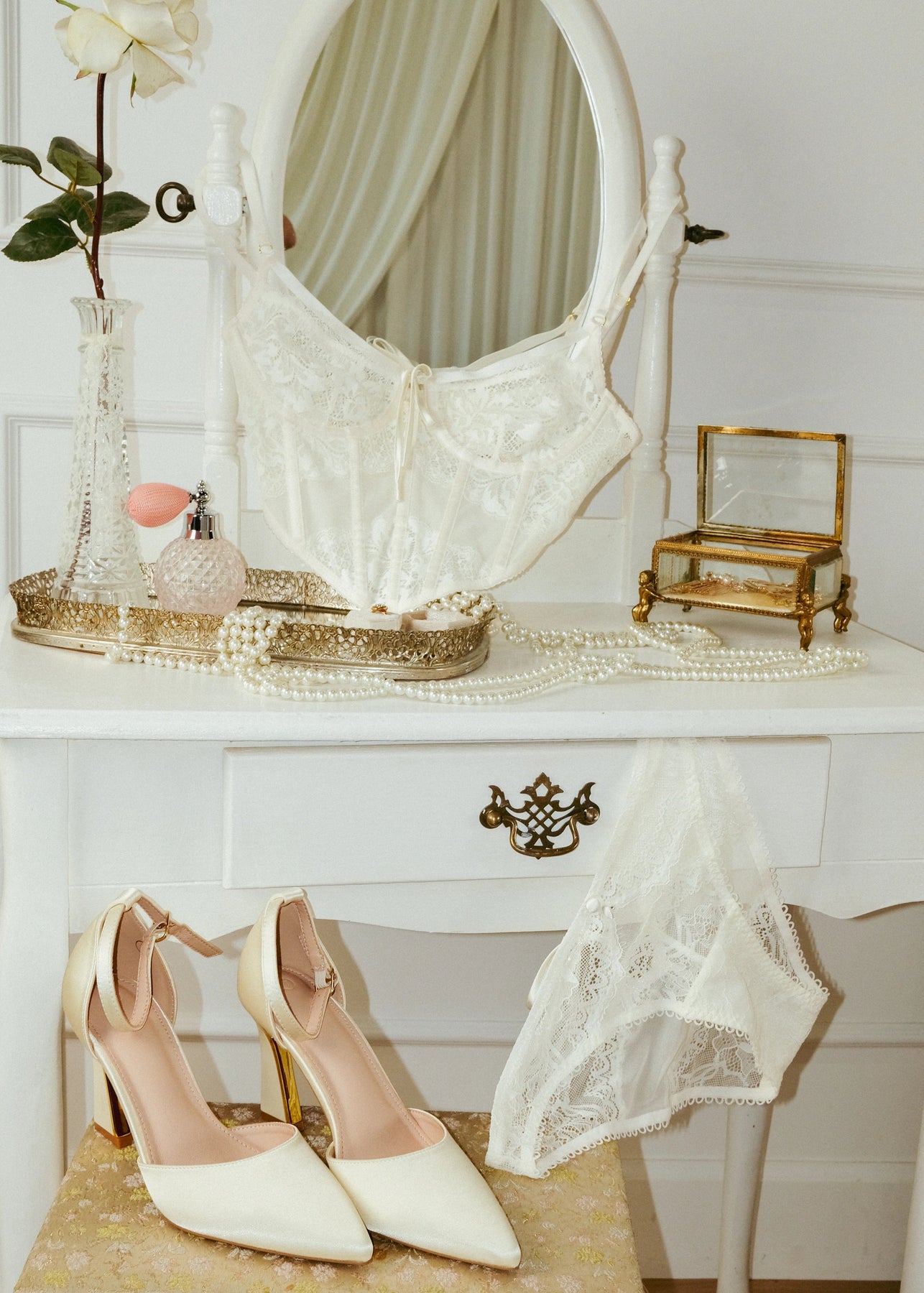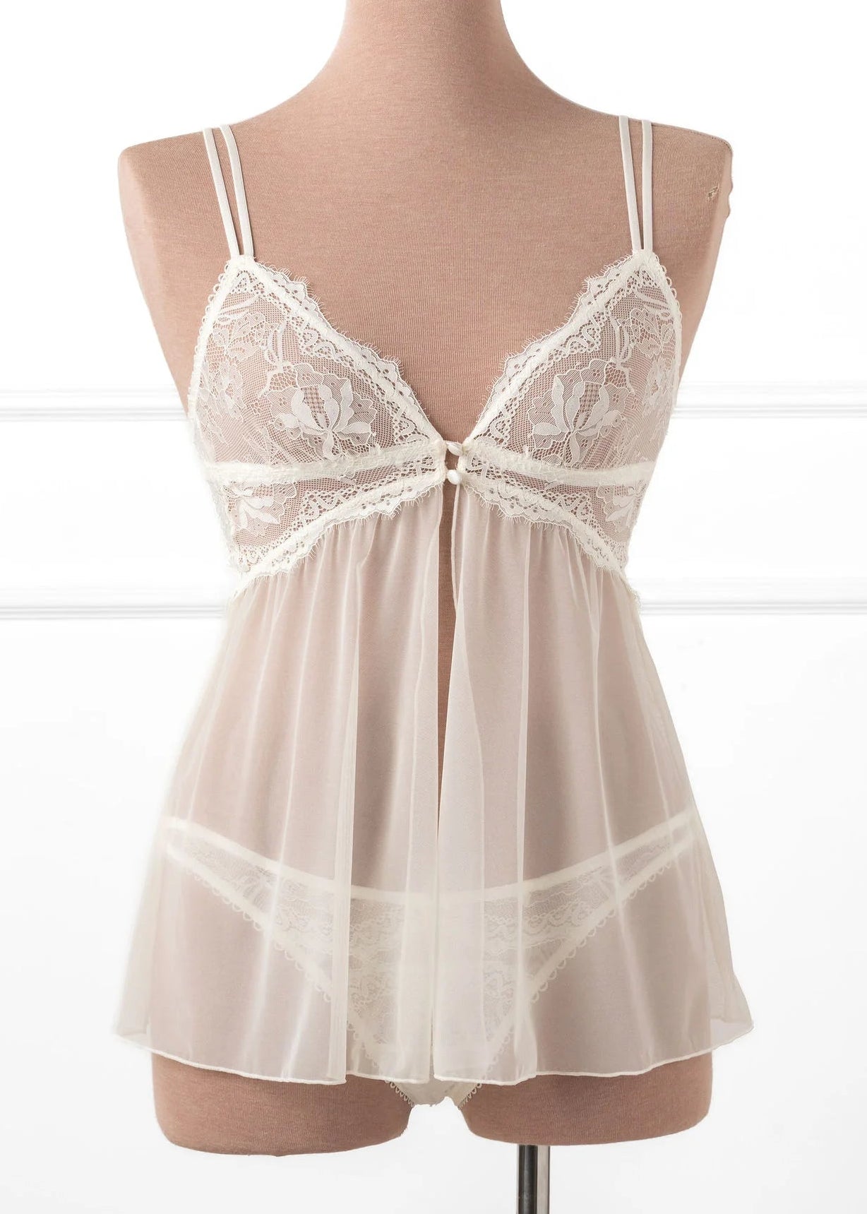 Lace & Mesh Button Babydoll - Pearl