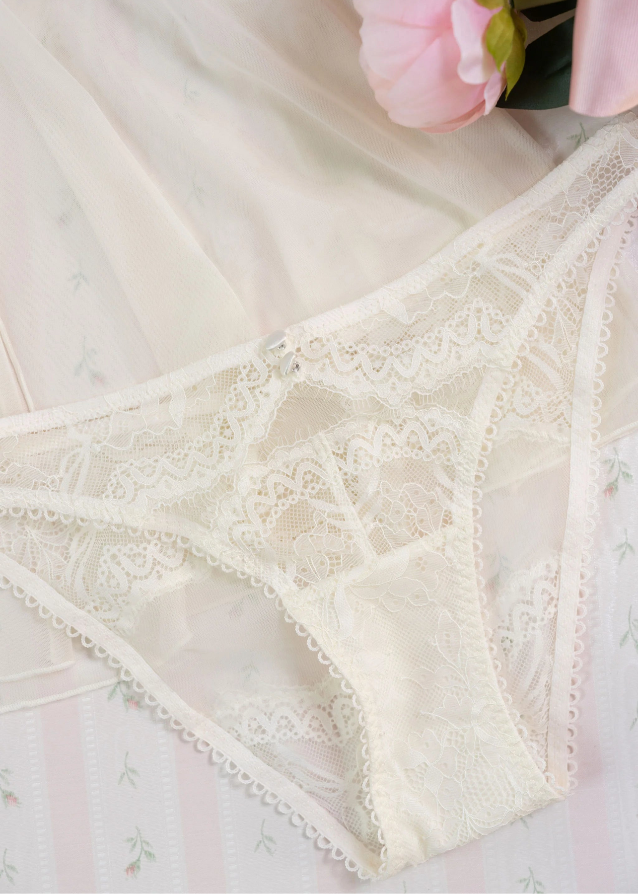 Lace & Mesh Button Panty - Pearl