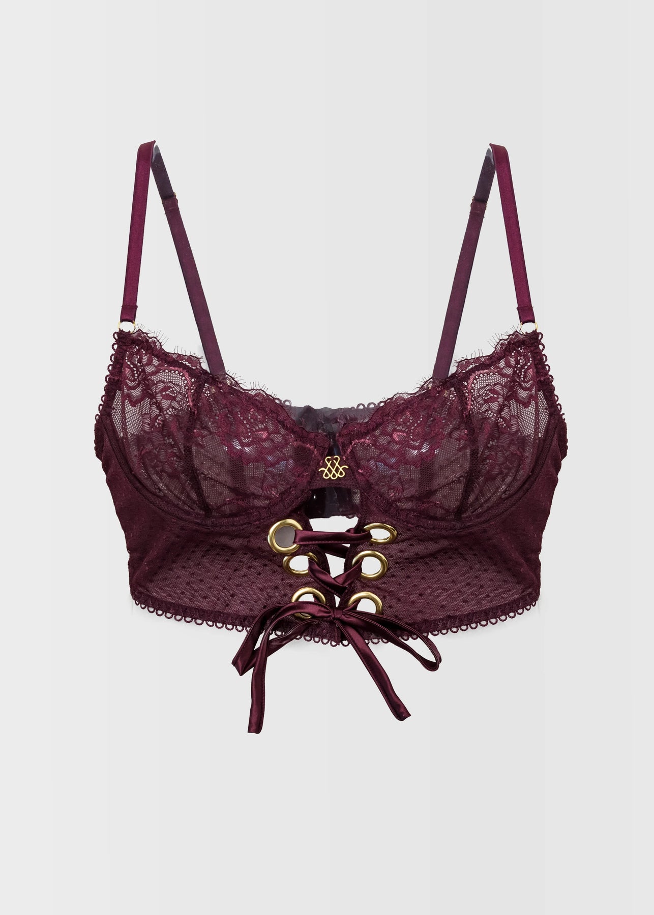 Fit notes from Emily: "I love how unique the gold grommets make this piece and the sheer unlined cups are extra sexy. Runs true to size, similar to other bustiers on site."