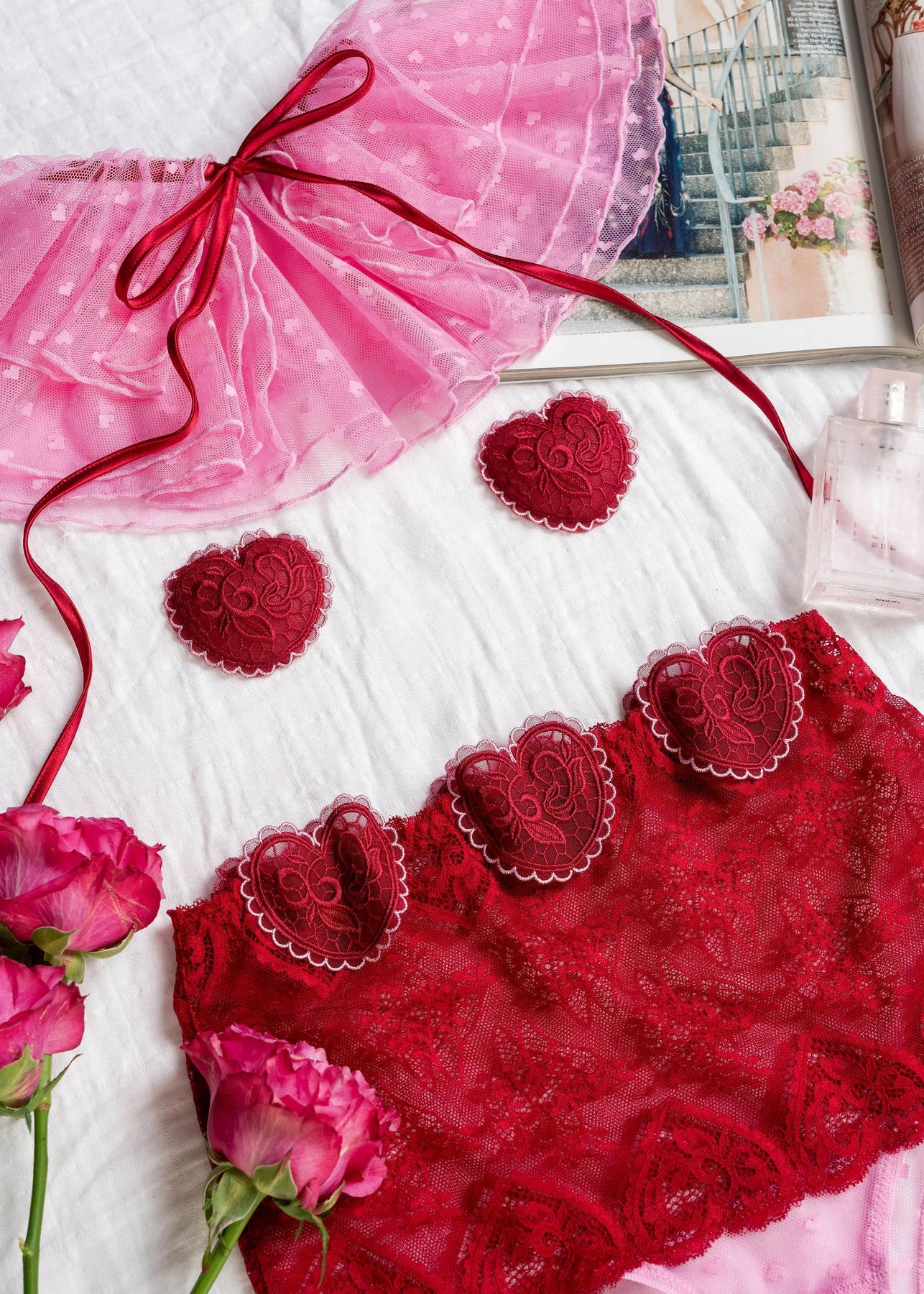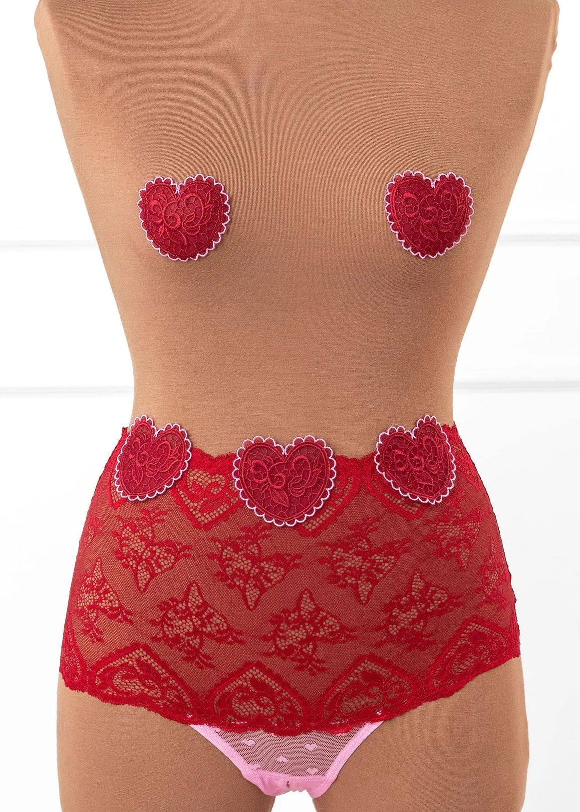 Heart Lace Pasties - Red