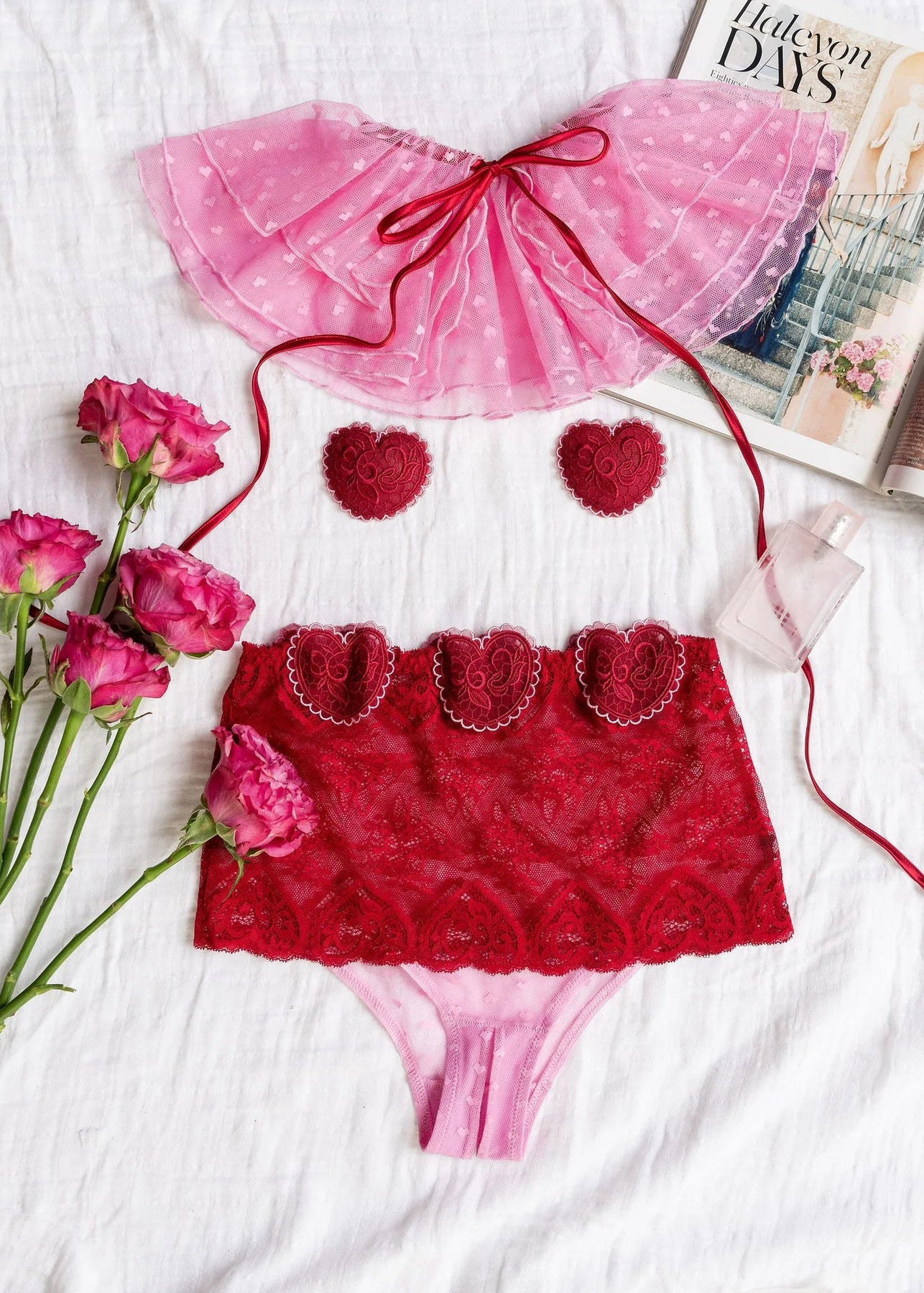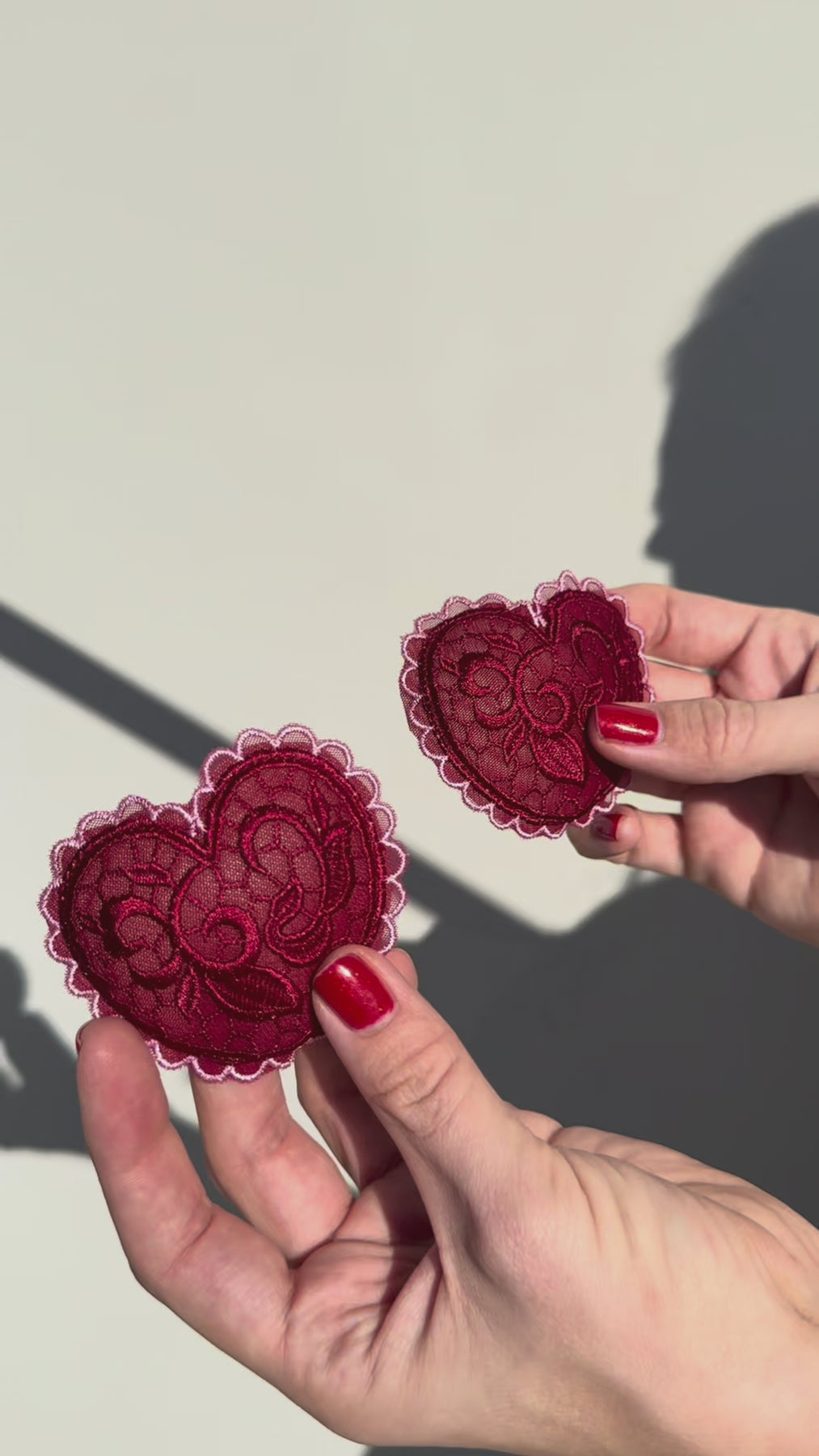 Sweet with a daring edge. These pasties are custom made from our signature heart lace to perfectly match our Valentine's Day Collection. One size fits all, easy to wear, and designed to add a playful little wink—because every queen knows the power of a well-placed heart. Pair them with our lingerie cape and your favorite panty for the perfect look or layer them under your date night 'fit for some extra fun.