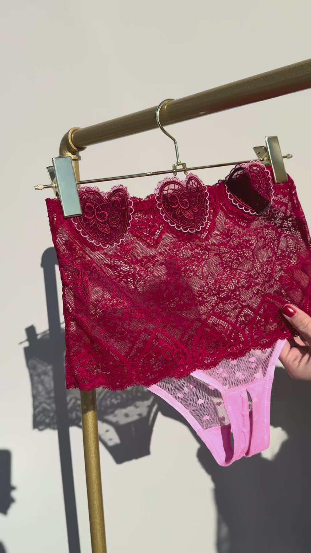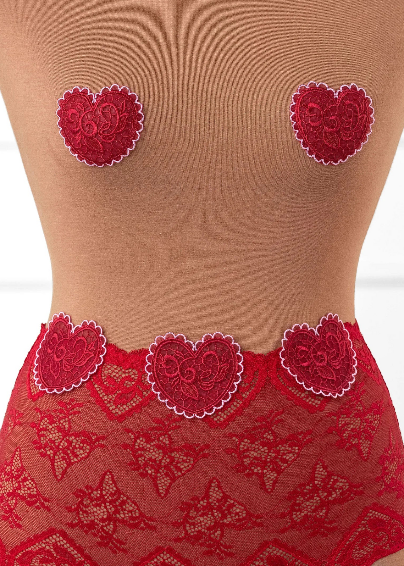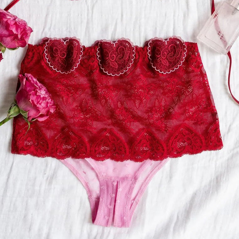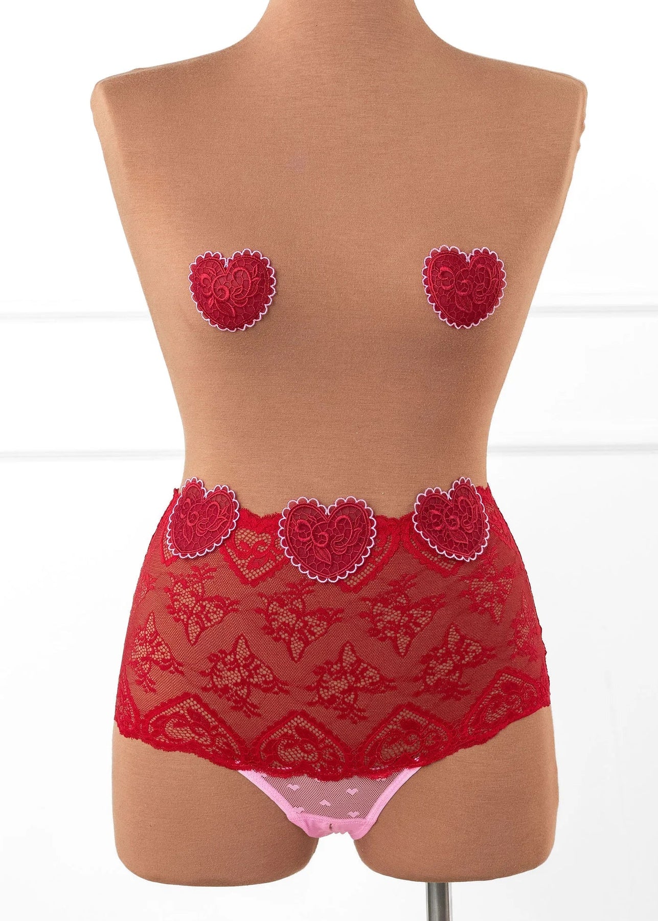 A cheeky little power move. This hipster panty features flirty heart appliqués and a crotchless design, making it equal parts playful and daring. Pair it with our lingerie collar and custom heart pasties and become a queen who plays by her own rules.
