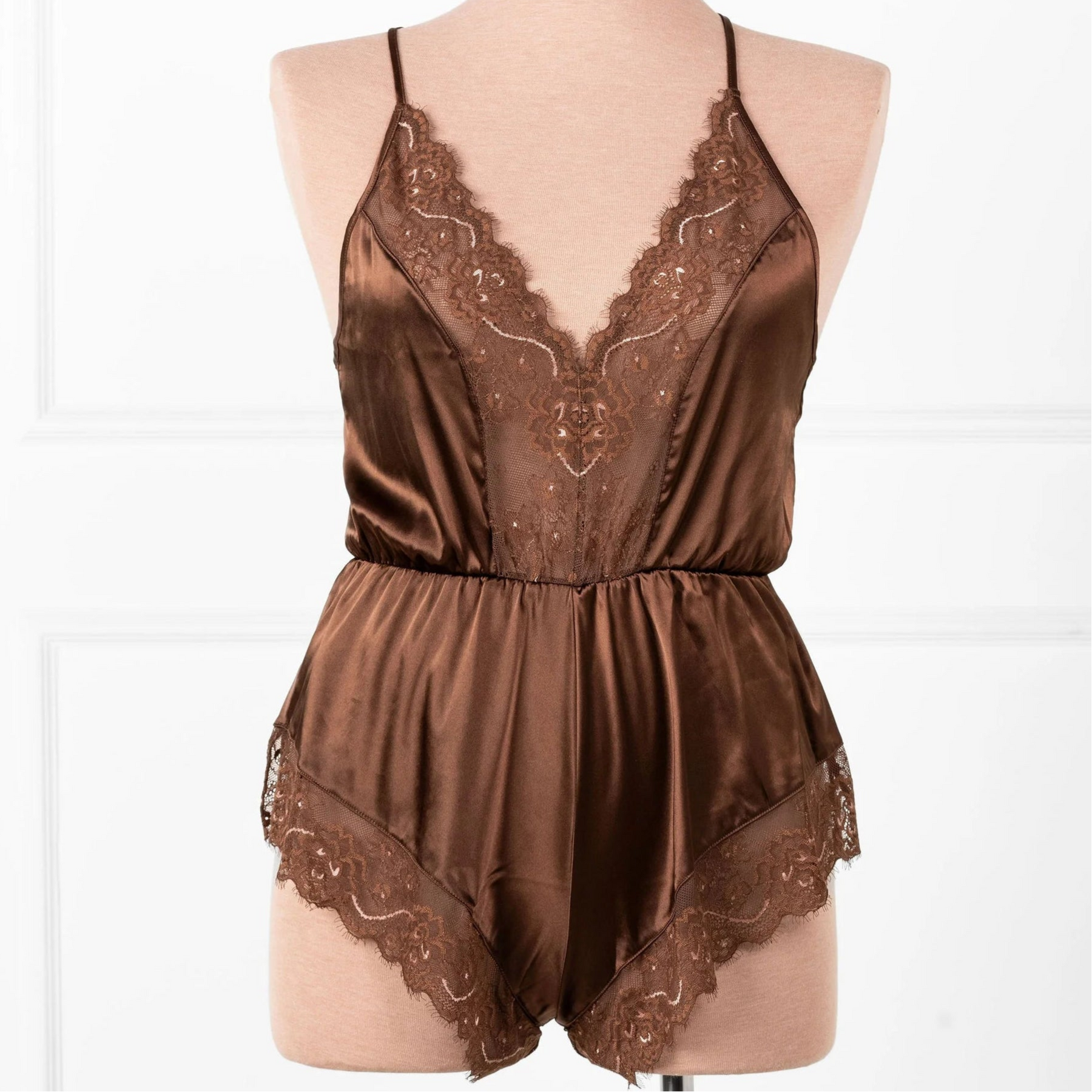 Fit notes from Emily: "I feel amazing in this!! I love the bottom half that feels like cheeky satin shorts and the high-leg cut is so flattering! This is one of the most comfy styles for me because it's looser yet sexy. This would work well for long torso gals as well because of the adjustable straps. Runs true to size."