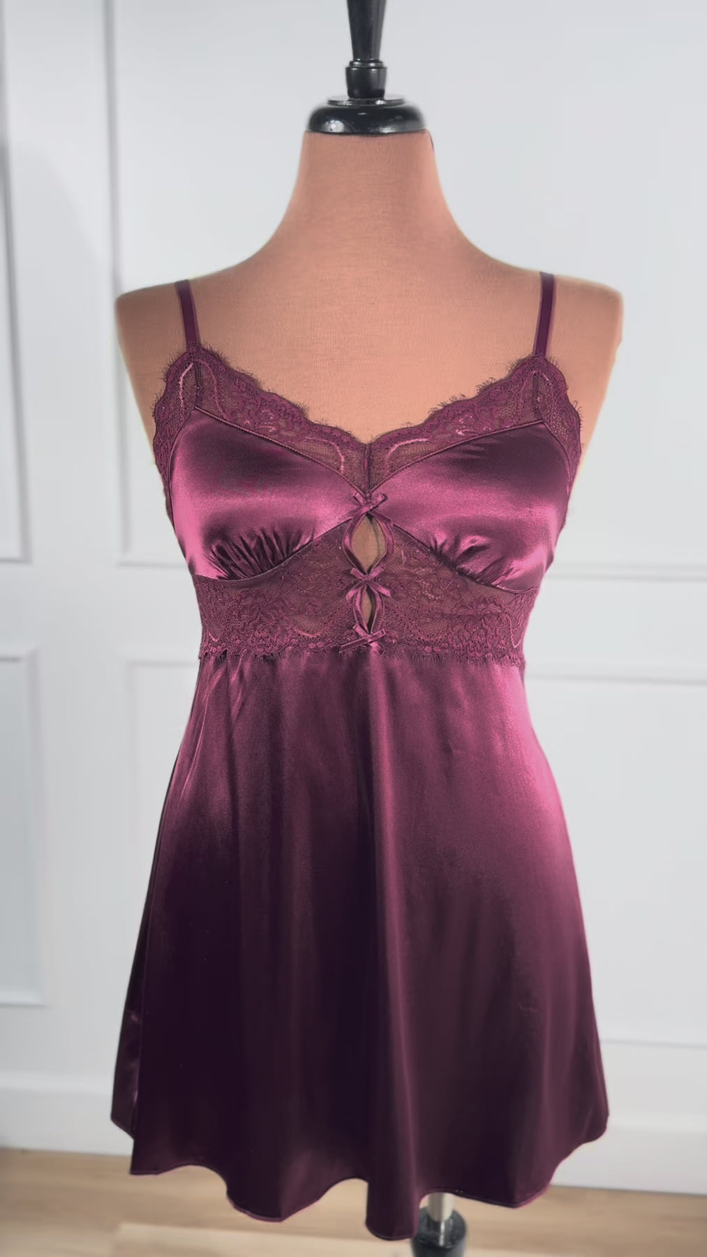 Satin & Eyelash Lace Slip - Cherry Lacquer