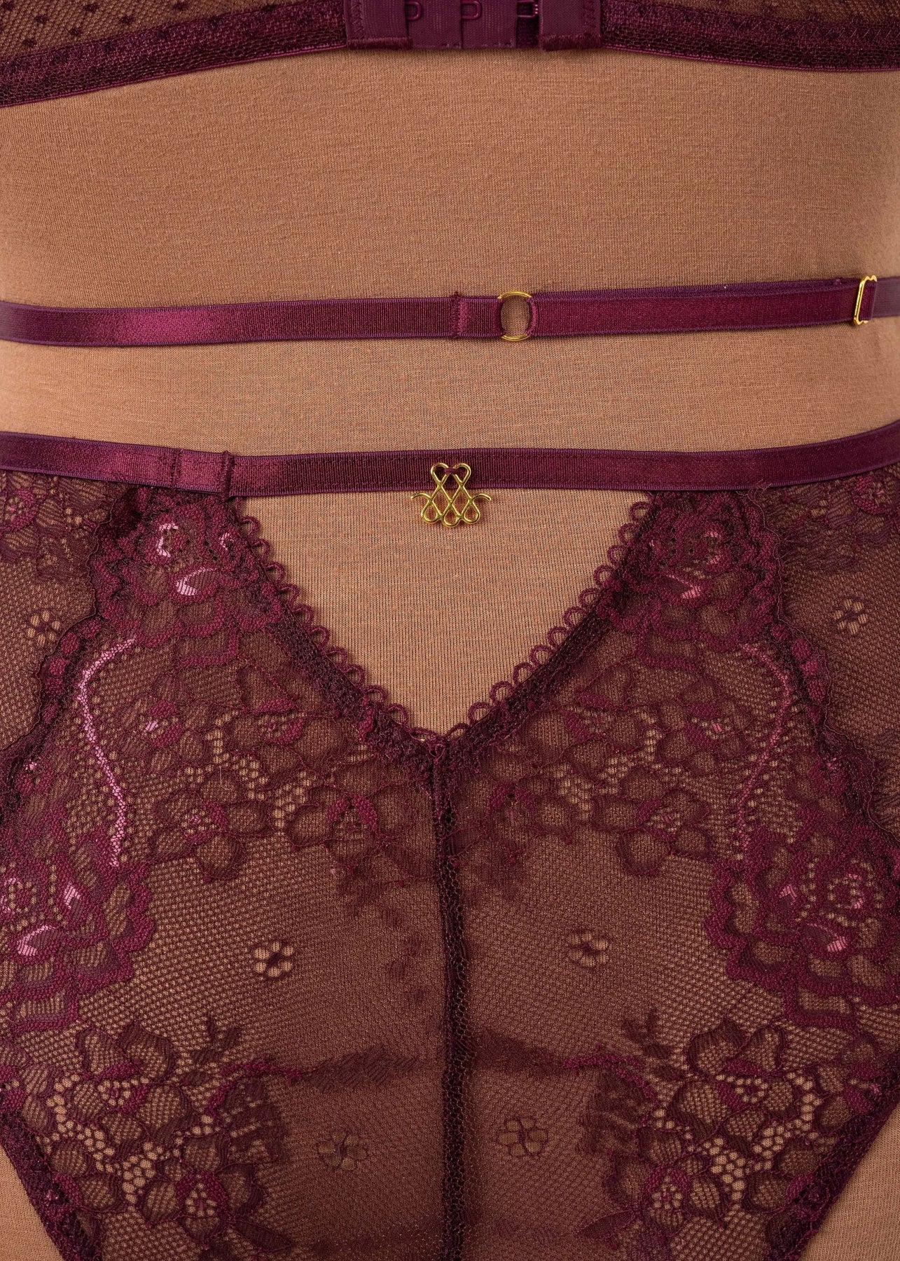 Flirty and bold, this high-waisted panty features functional, playful straps that highlight your silhouette while the daring crotchless design adds a cheeky surprise.