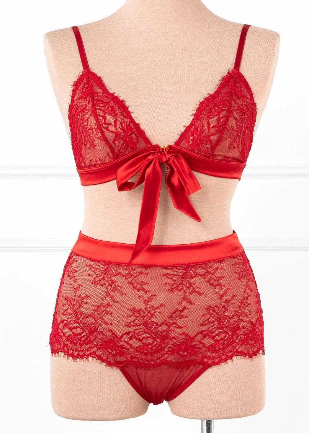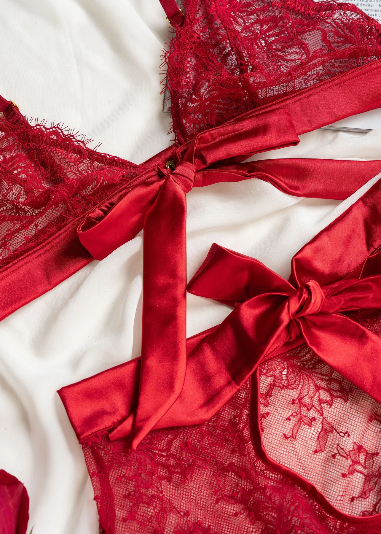 Eyelash Lace Bow Bralette - Red