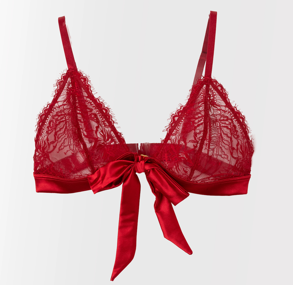 Eyelash Lace Bow Bralette - Red - Mentionables