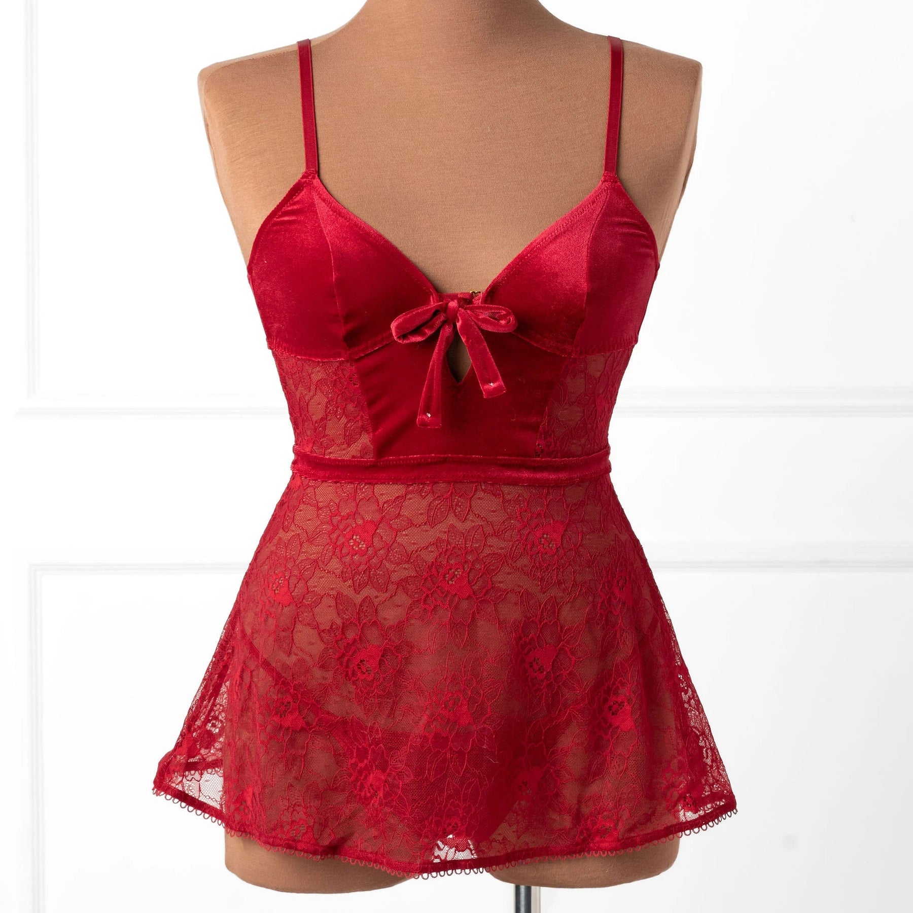 Heat up the holiday season in this merry little Santa Babydoll. Soft marabou pom poms and trim that are removable (so you can continue wearing it after the holidays!), combined with functional velvet bows at front and back, create this irresistible top drawer must-have. Just add a santa hat ;)
