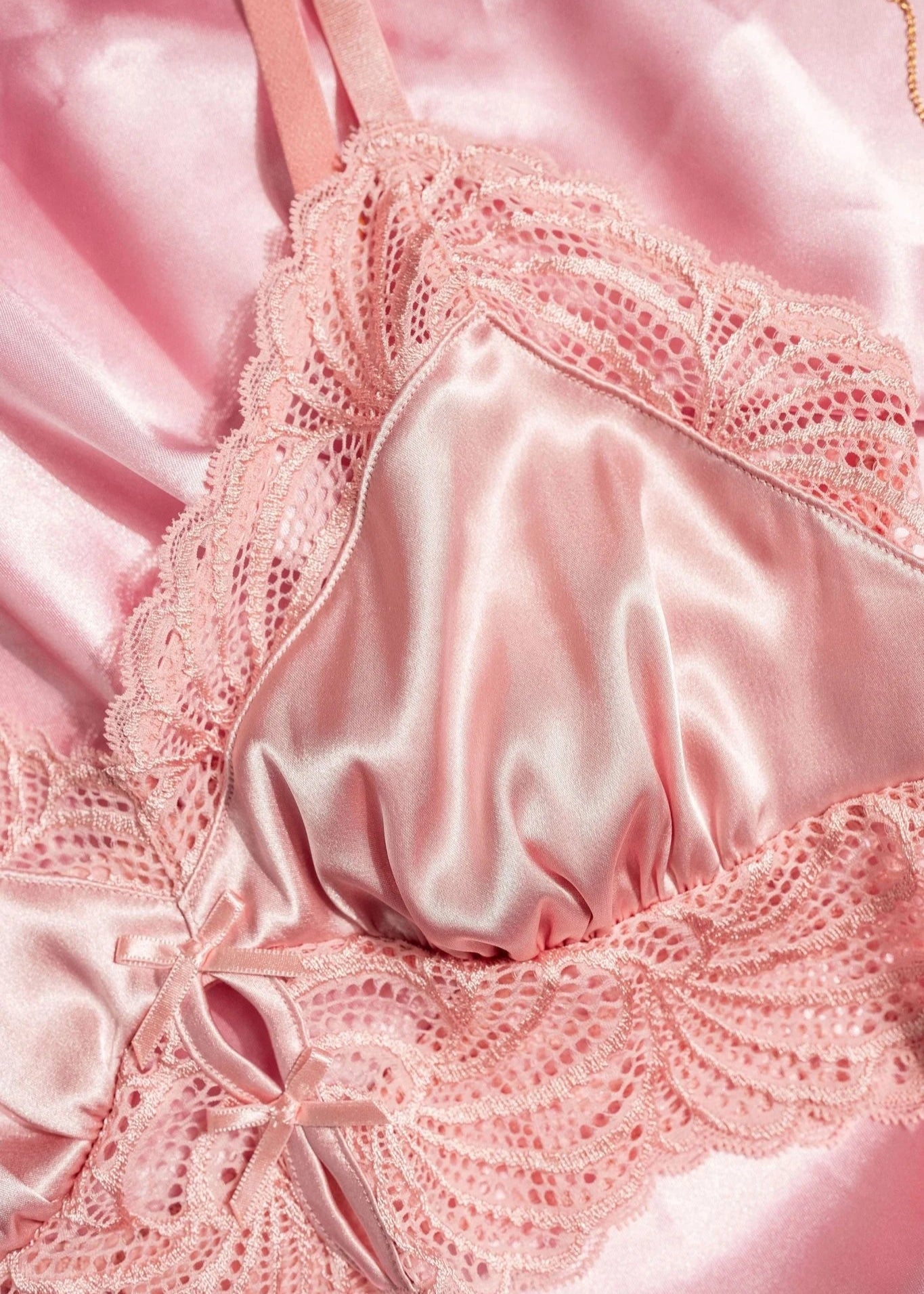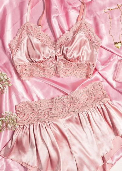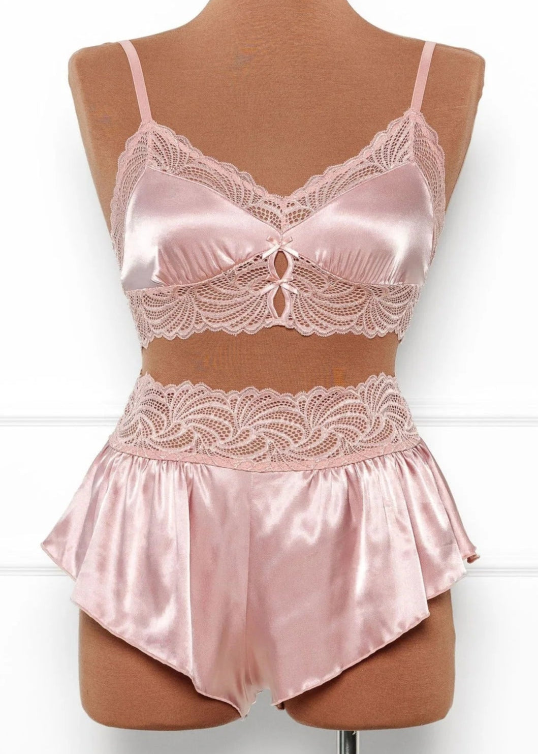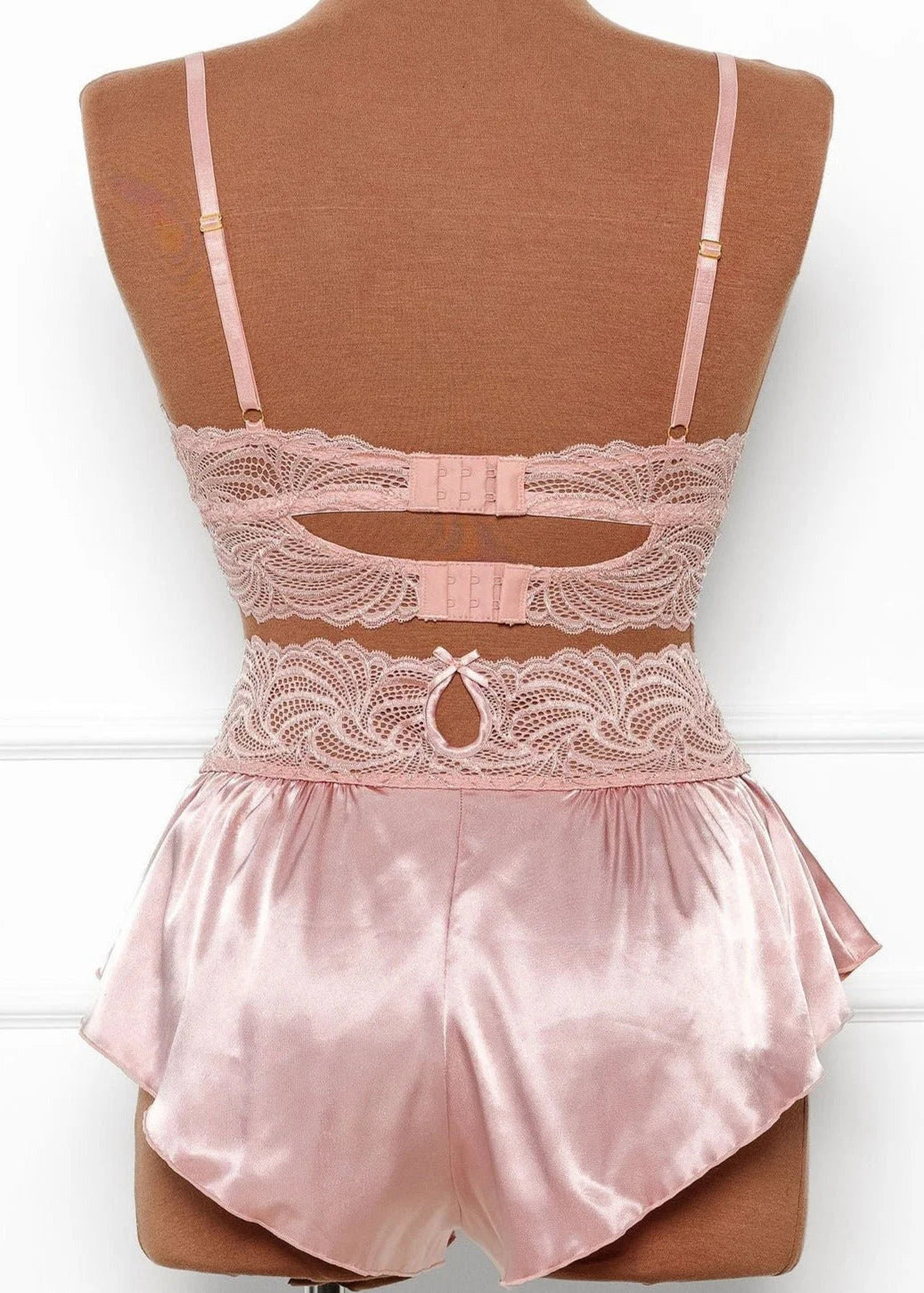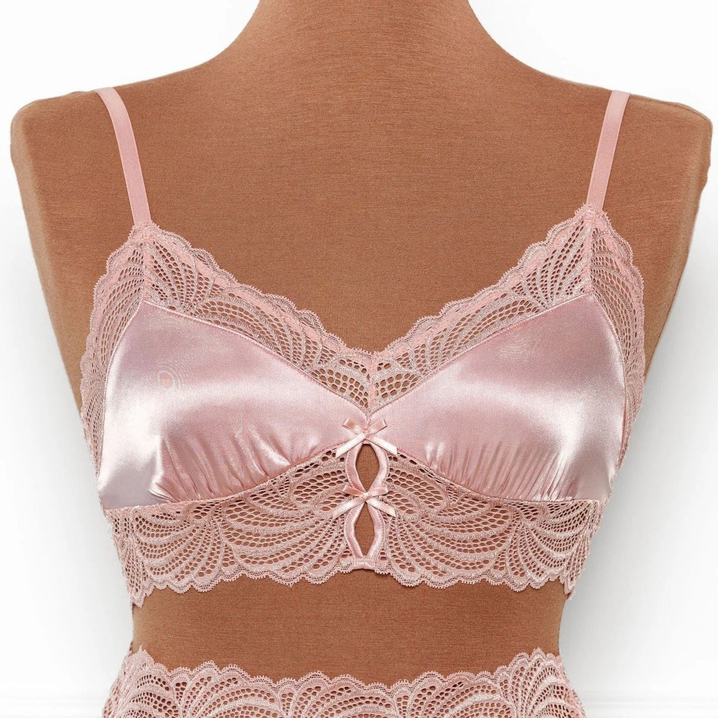 Satin and lace longline sleepy bralette with keyholes and decorative bows