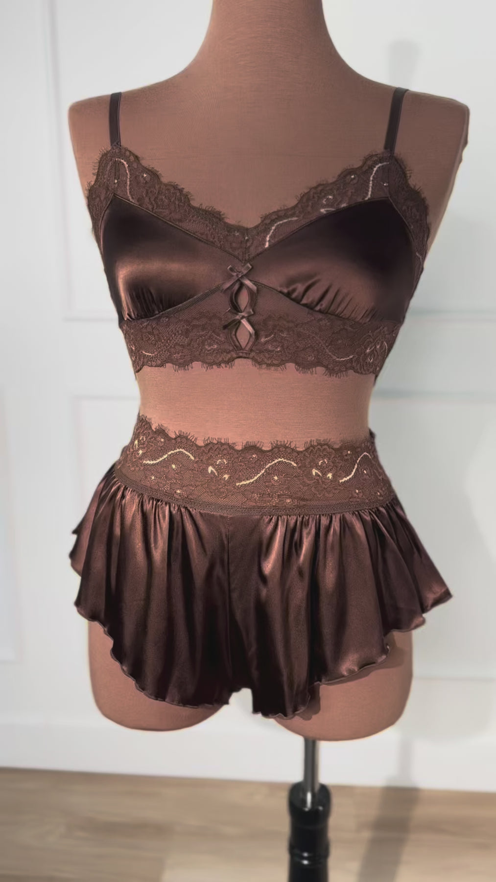 Lacy Satin Keyhole Bralette - ChocolateLacy Satin Keyhole Bralette - Chocolate