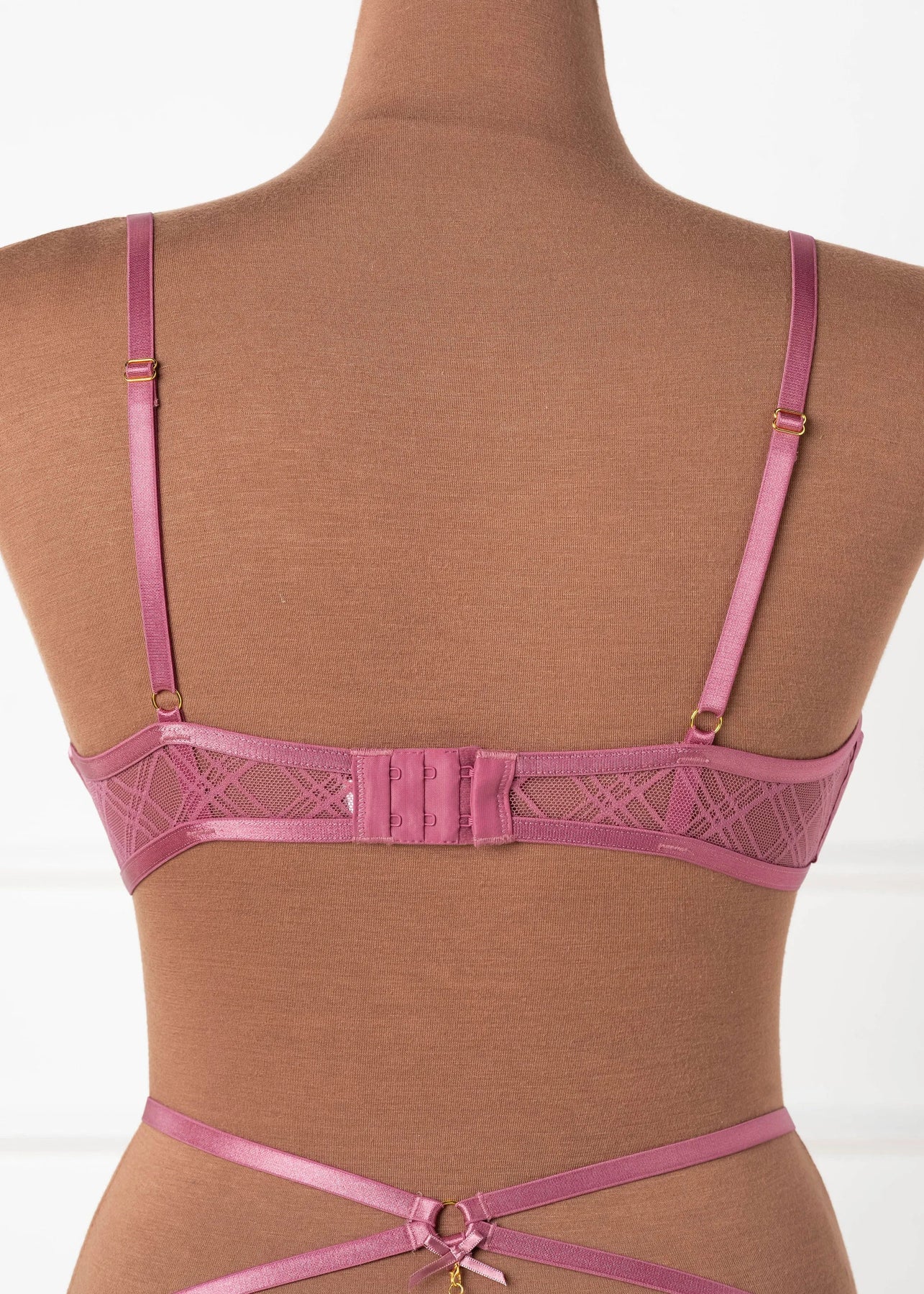 Flirty and festive, our Lacy Underwire Charm Bralette blends lace and plaid mesh with supportive underwire and functional cage straps, making it a great little something for fuller busts to slip into. Removable jingle bell charms jingle with every move—swap them out when you want more playful, personalized sparkle.