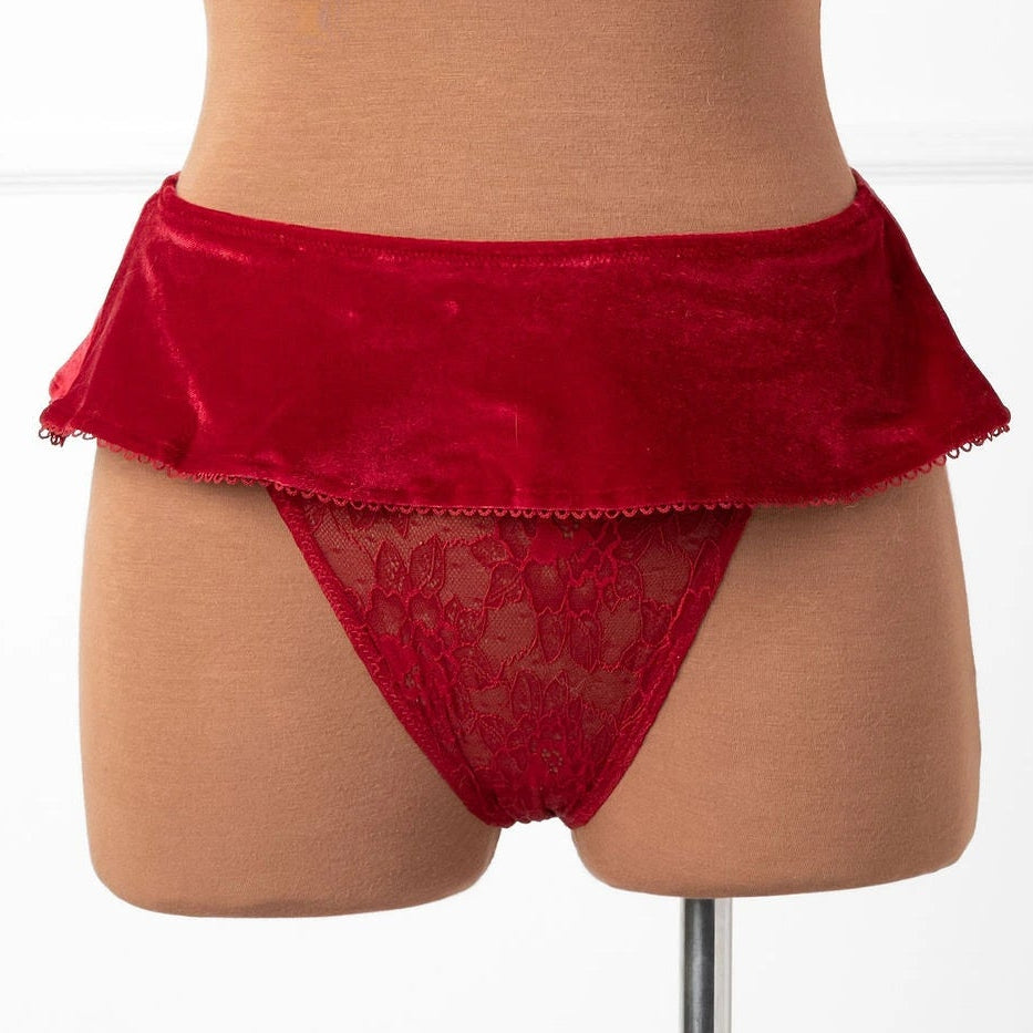 Heat up the holiday season in this merry little Santa Baby panty. Complete with removable fur lining and a functional velvet tie! Just add a Santa hat to complete the look.