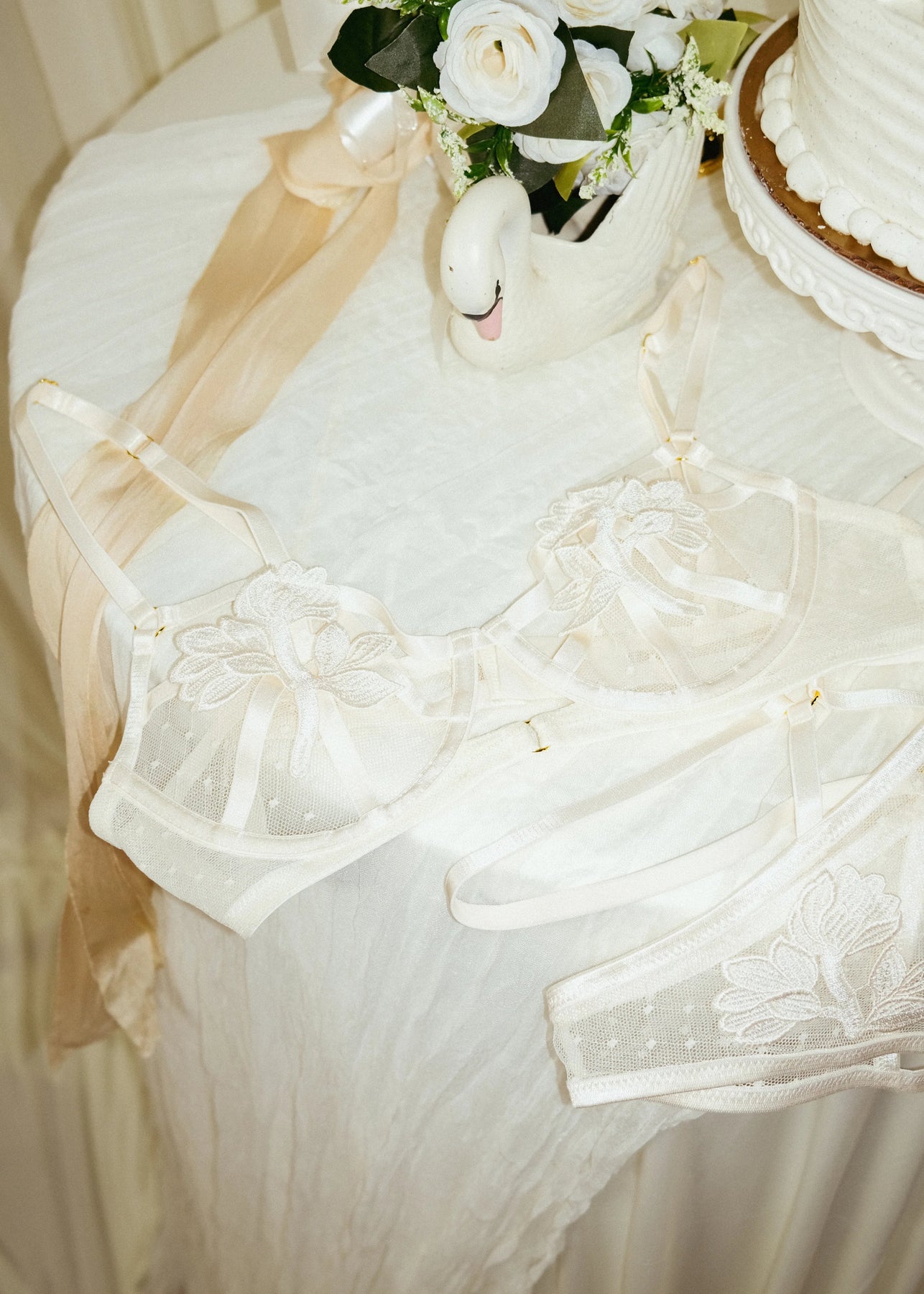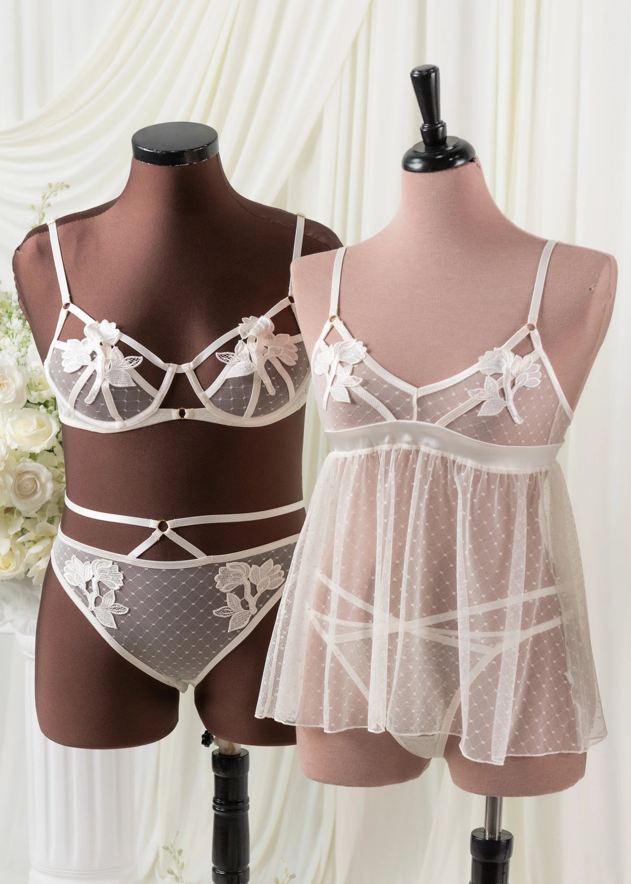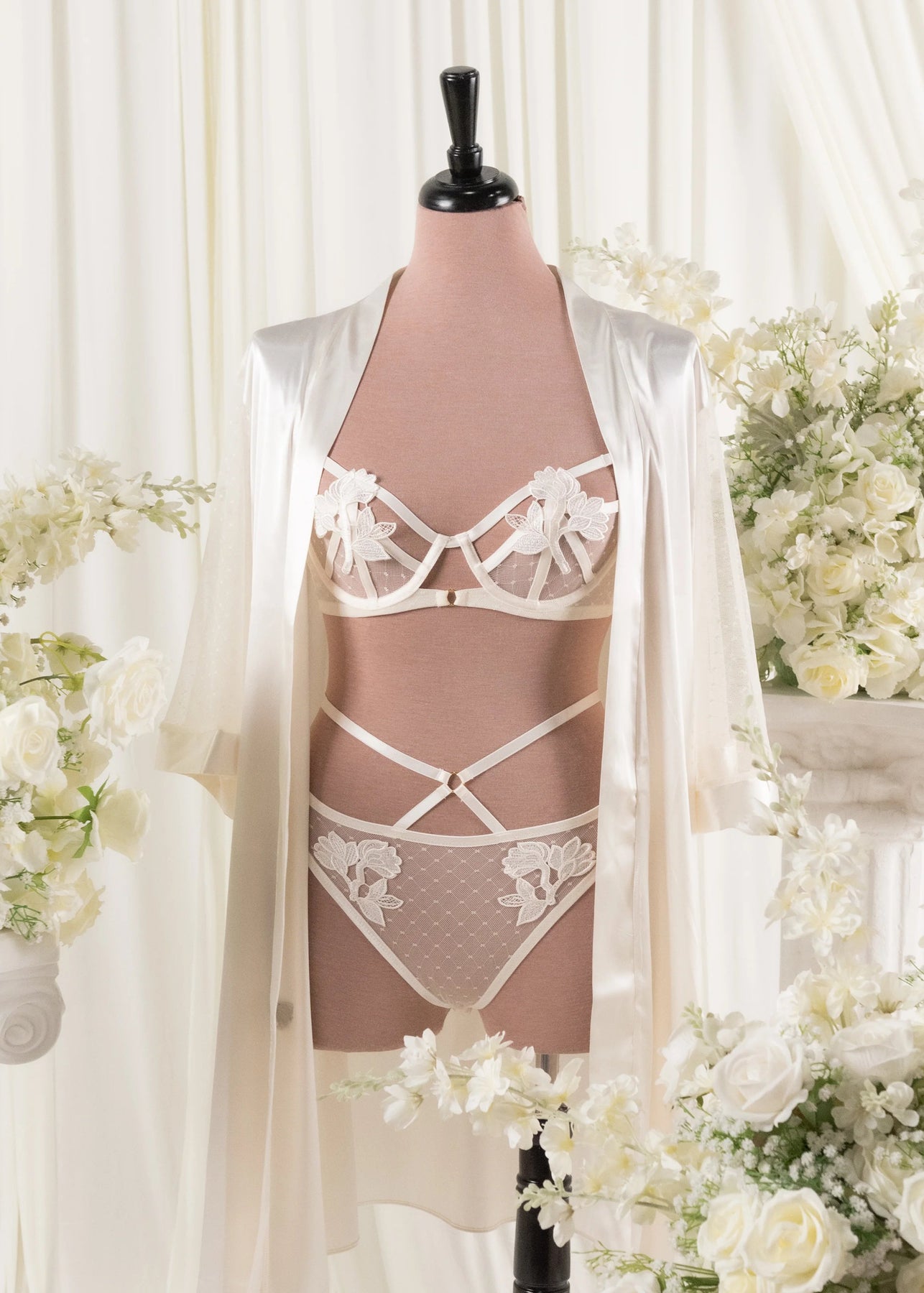 A bralette that brings the flirt. Diamond mesh underwire cups, sweet appliqué accents, and strappy details create a timeless look with a playful edge—made to feel just as special now as forever.