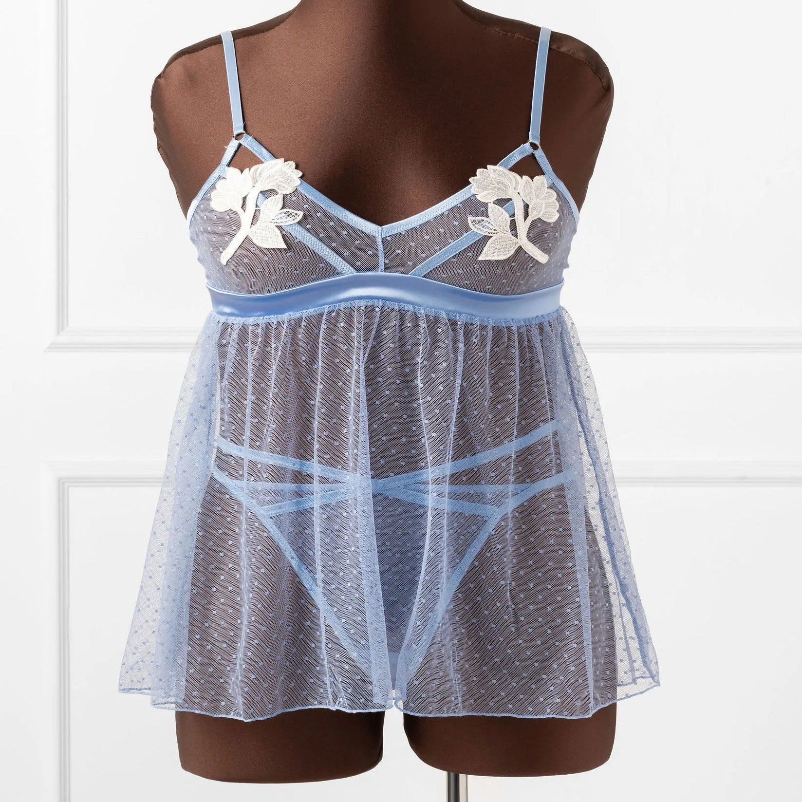 Emily's Fit Notes: "This babydoll is so flirty and lightweight, I love how the diamond mesh adds that sheer sexy vibe without feeling too heavy! It has gentle stretch, so it drapes beautifully. Runs true to size."