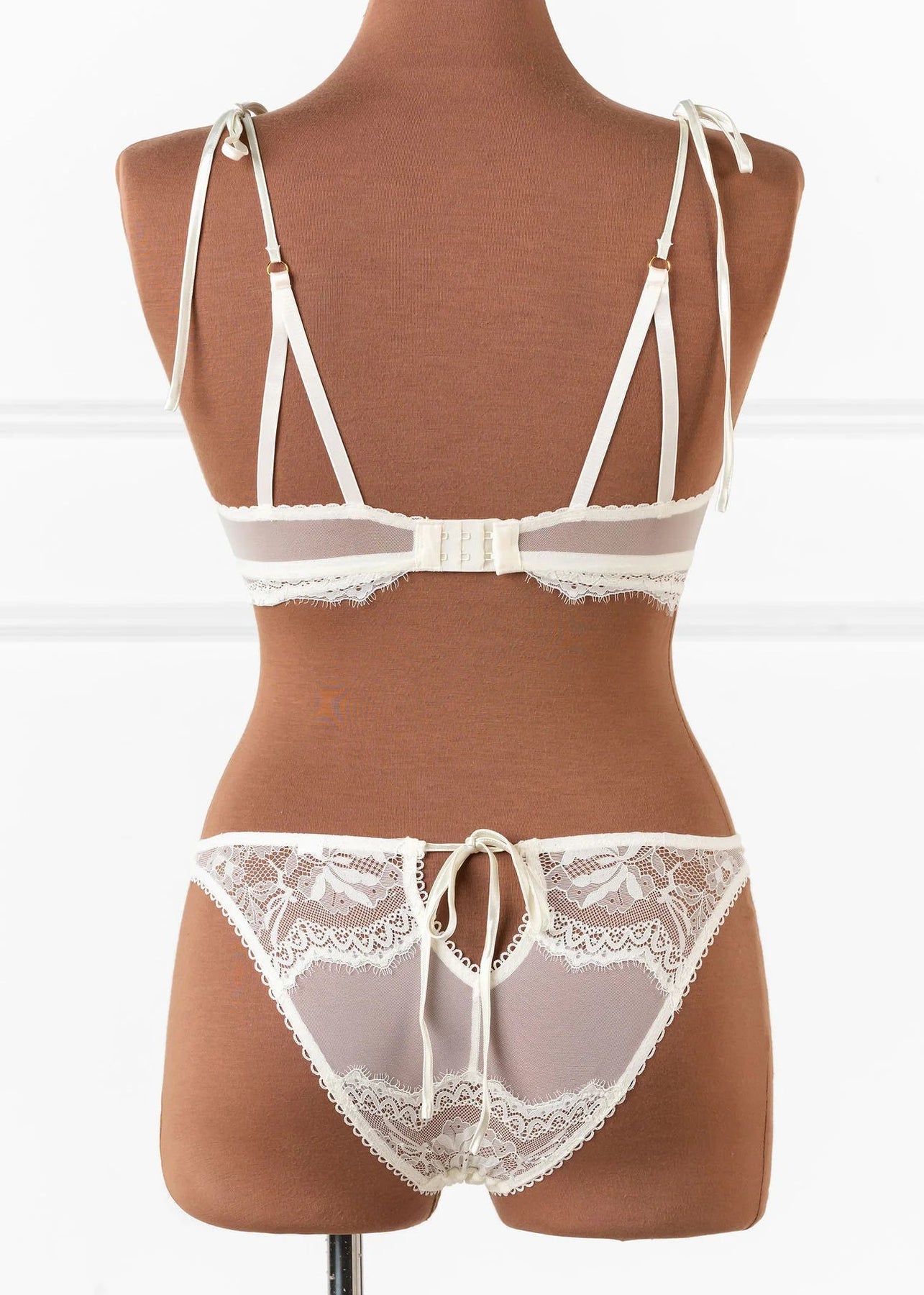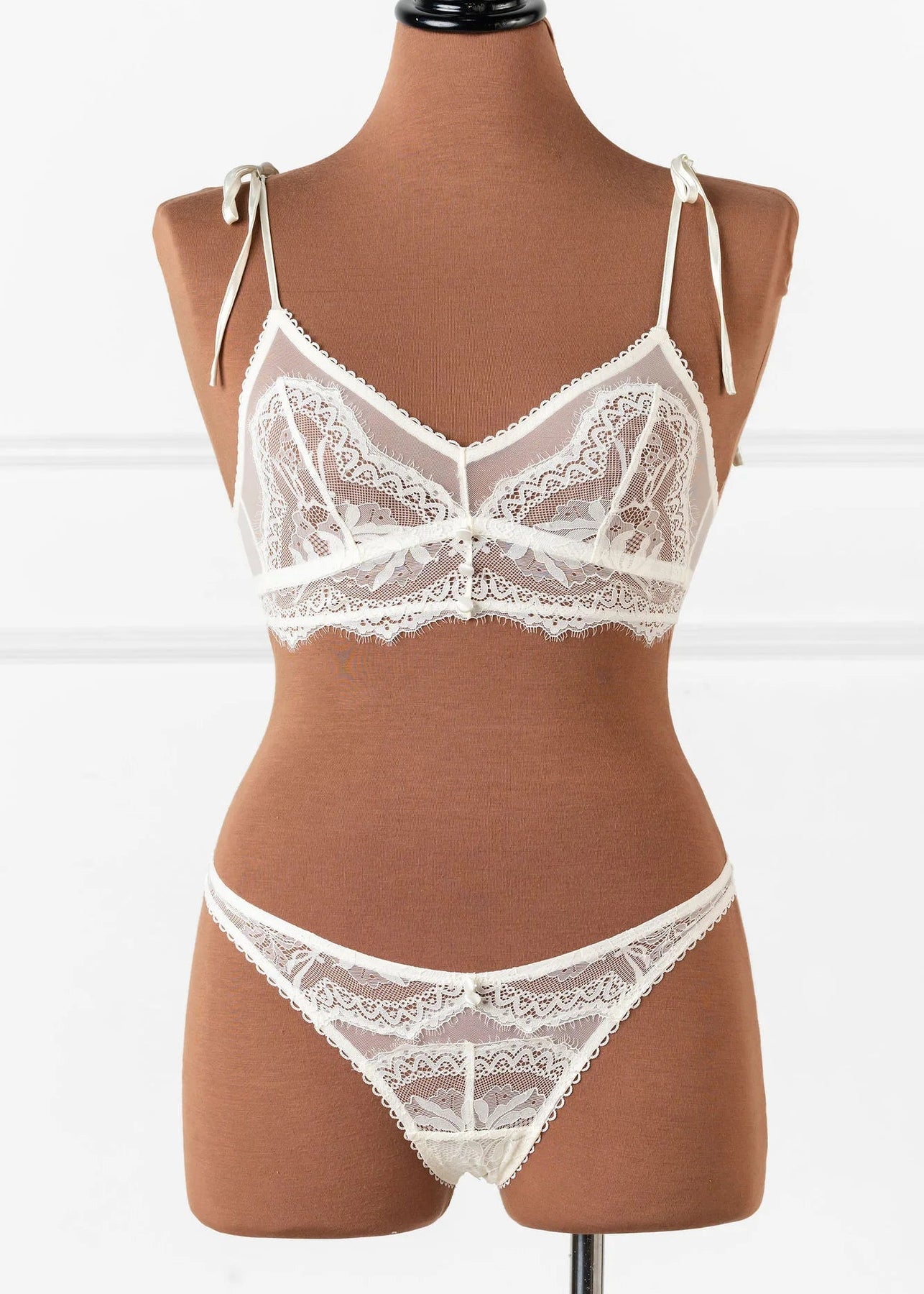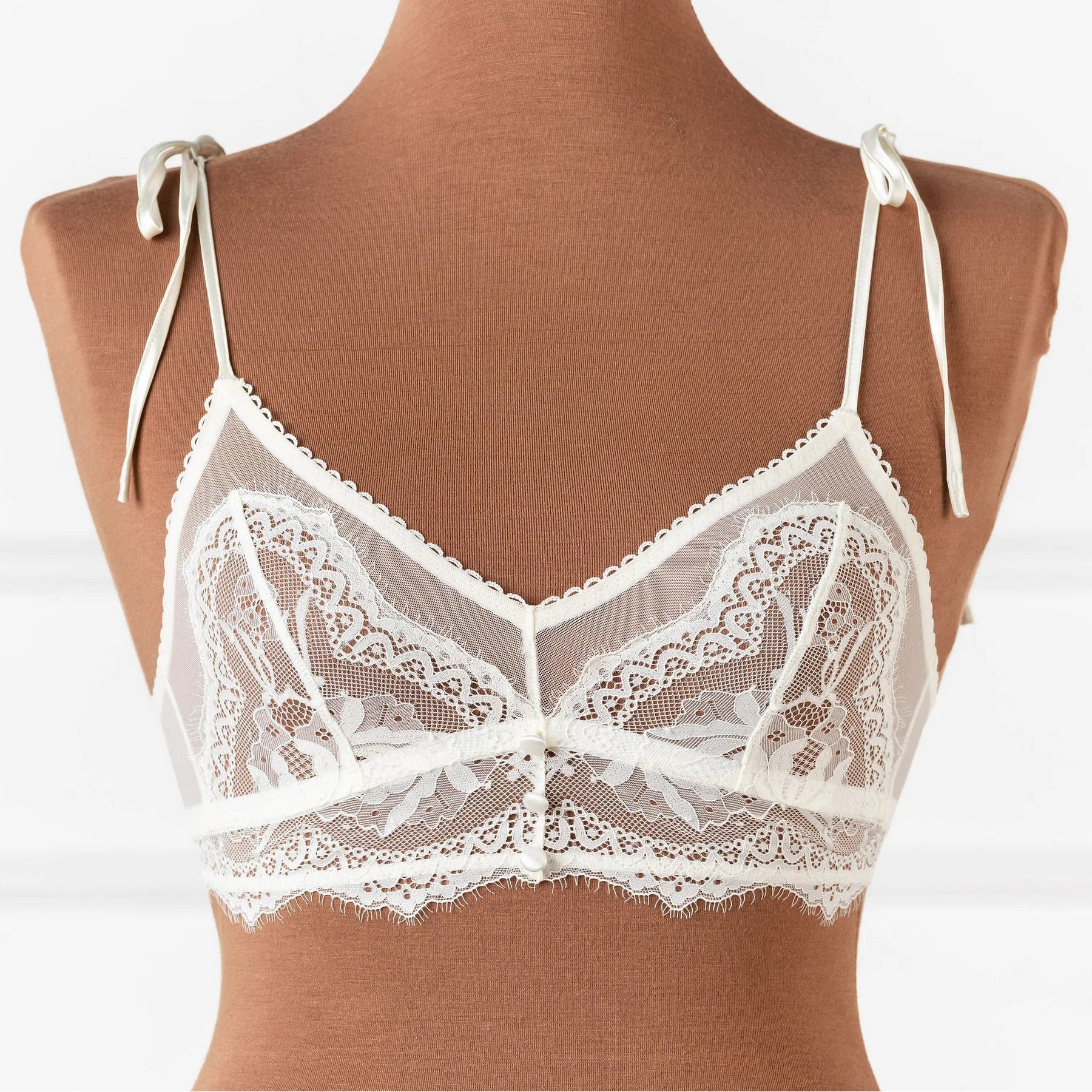 Emily's Fit Notes: "There are so many intricate details that make this bridal bralette so special! The eyelash lace below-the-bust, satin buttons, scalloped elastic and functional satin ties are all so stunning. I love the adjustability of the satin bows at the shoulders to get a more snug fit. Runs true to size."