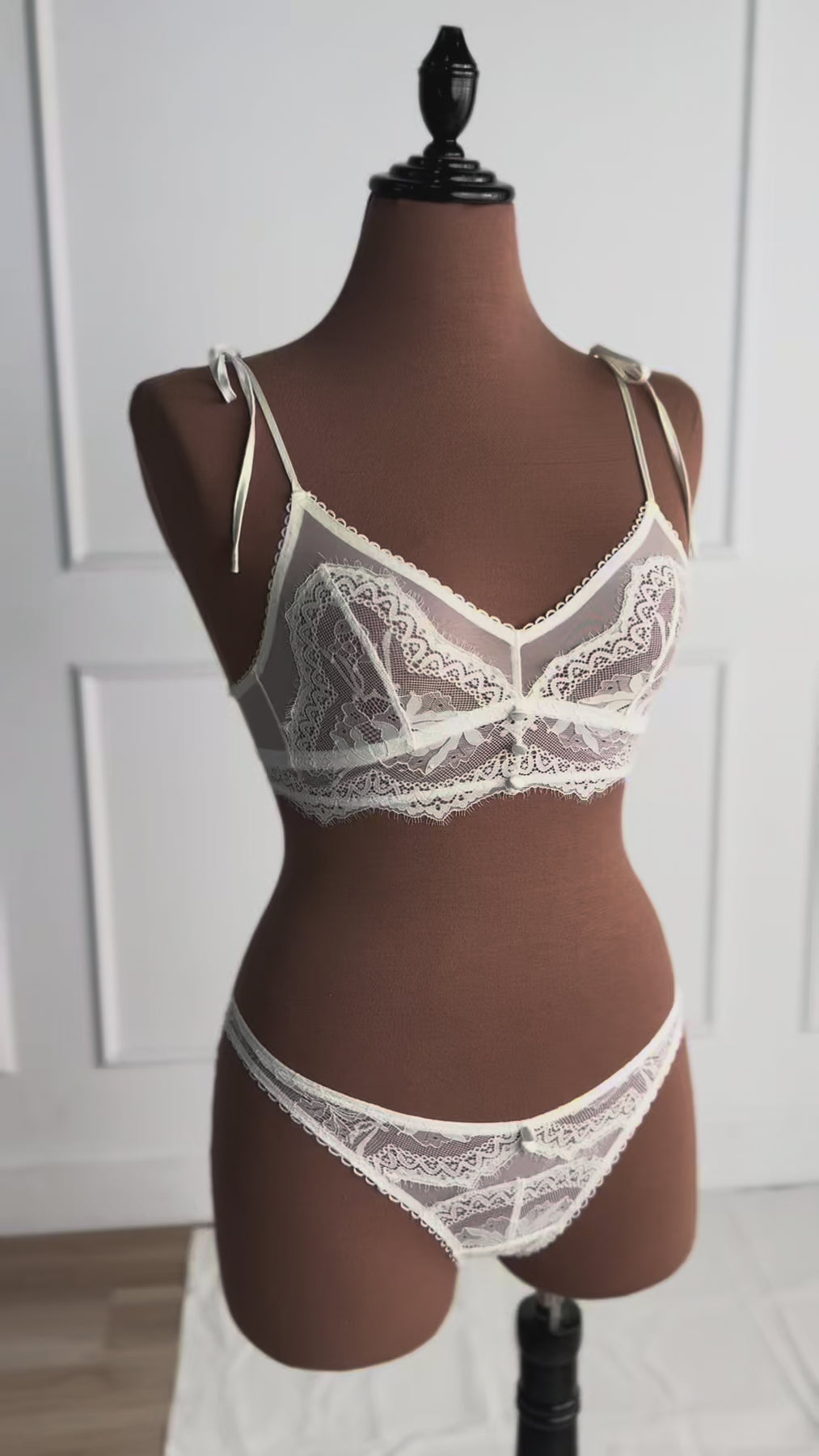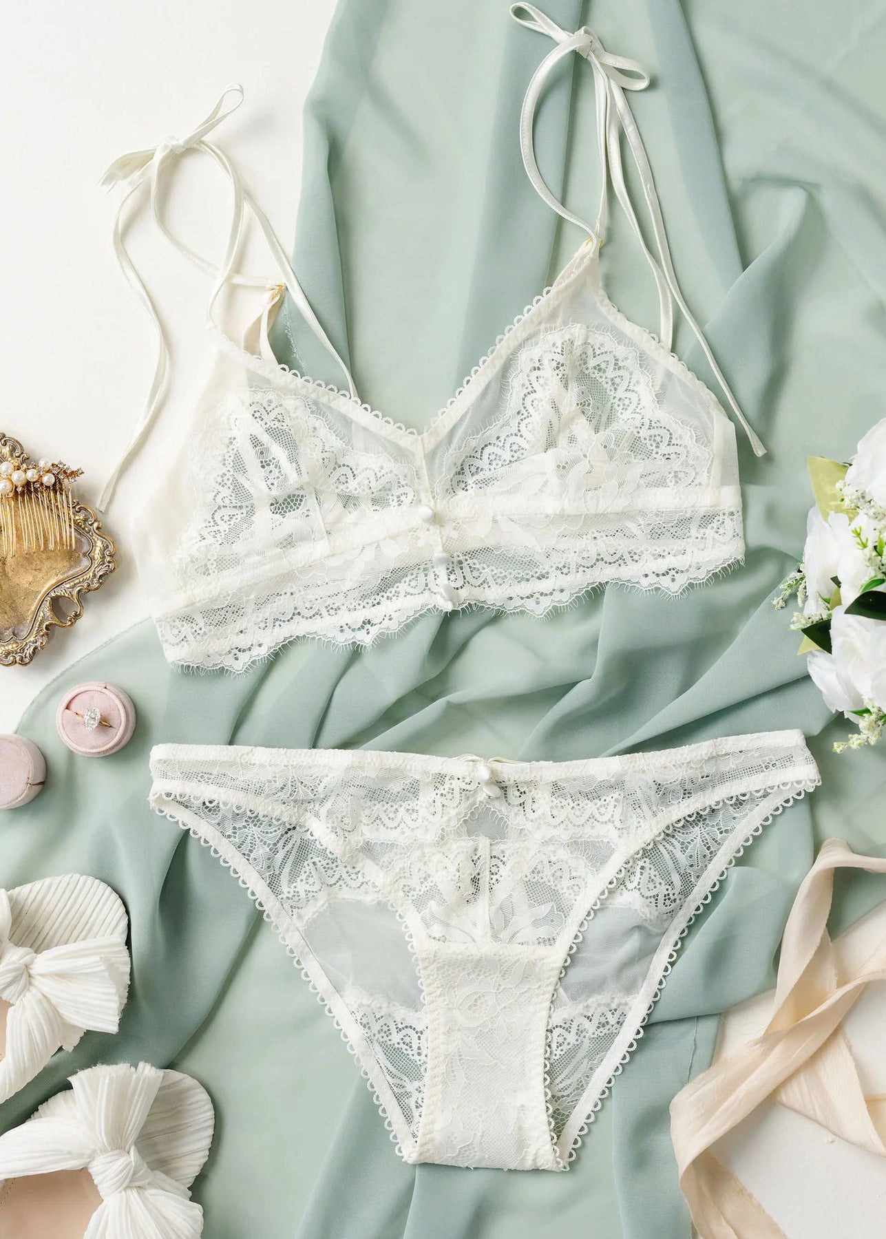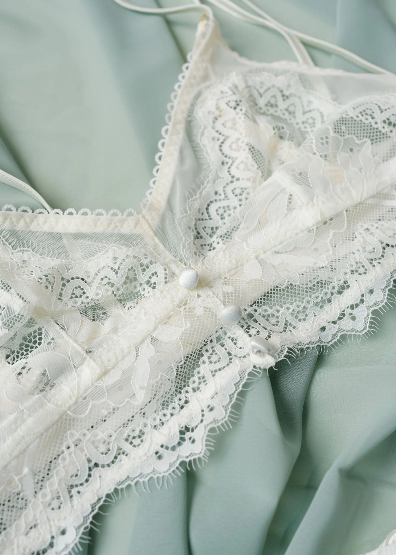 Emily's Fit Notes: "There are so many intricate details that make this bridal bralette so special! The eyelash lace below-the-bust, satin buttons, scalloped elastic and functional satin ties are all so stunning. I love the adjustability of the satin bows at the shoulders to get a more snug fit. Runs true to size."