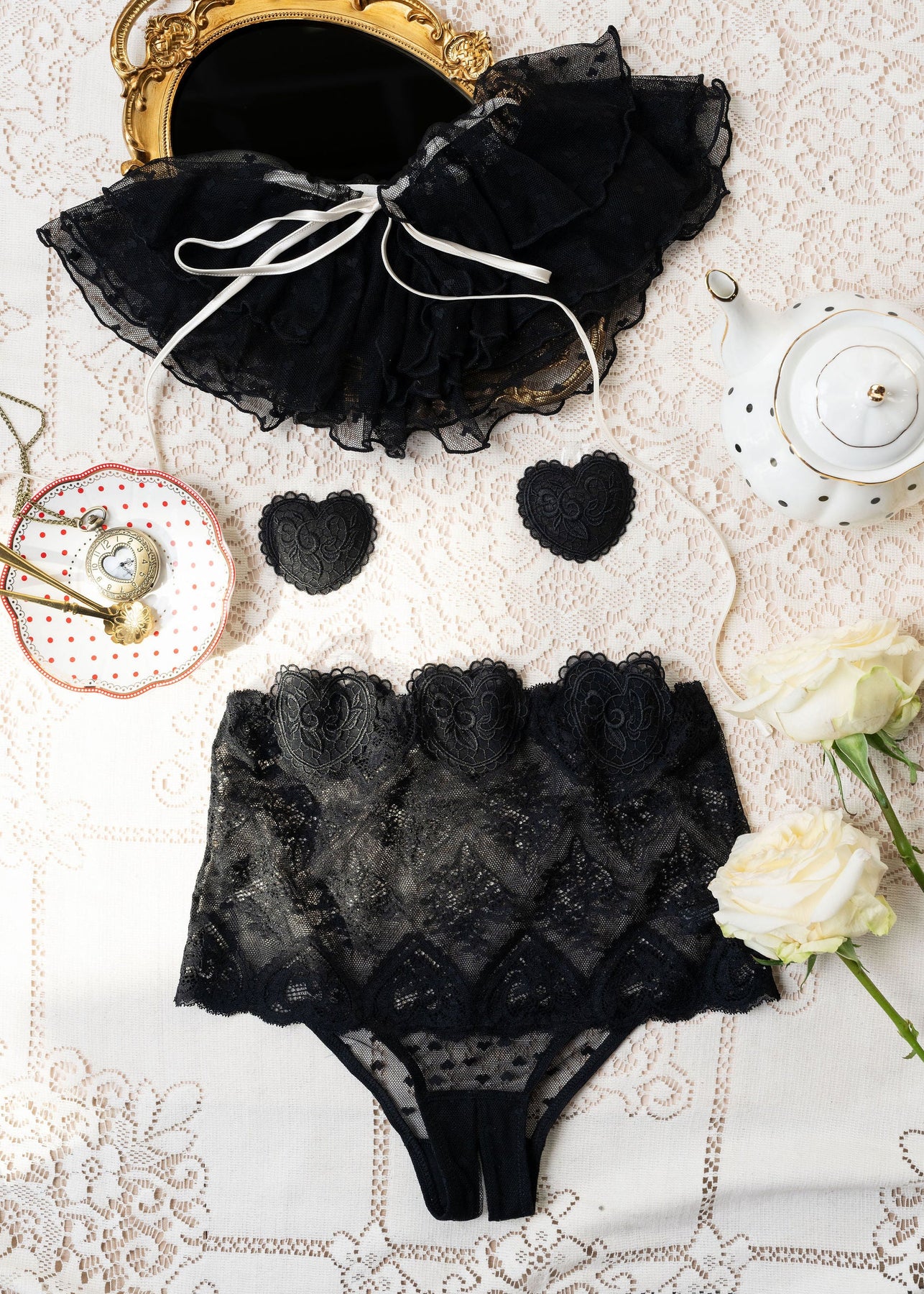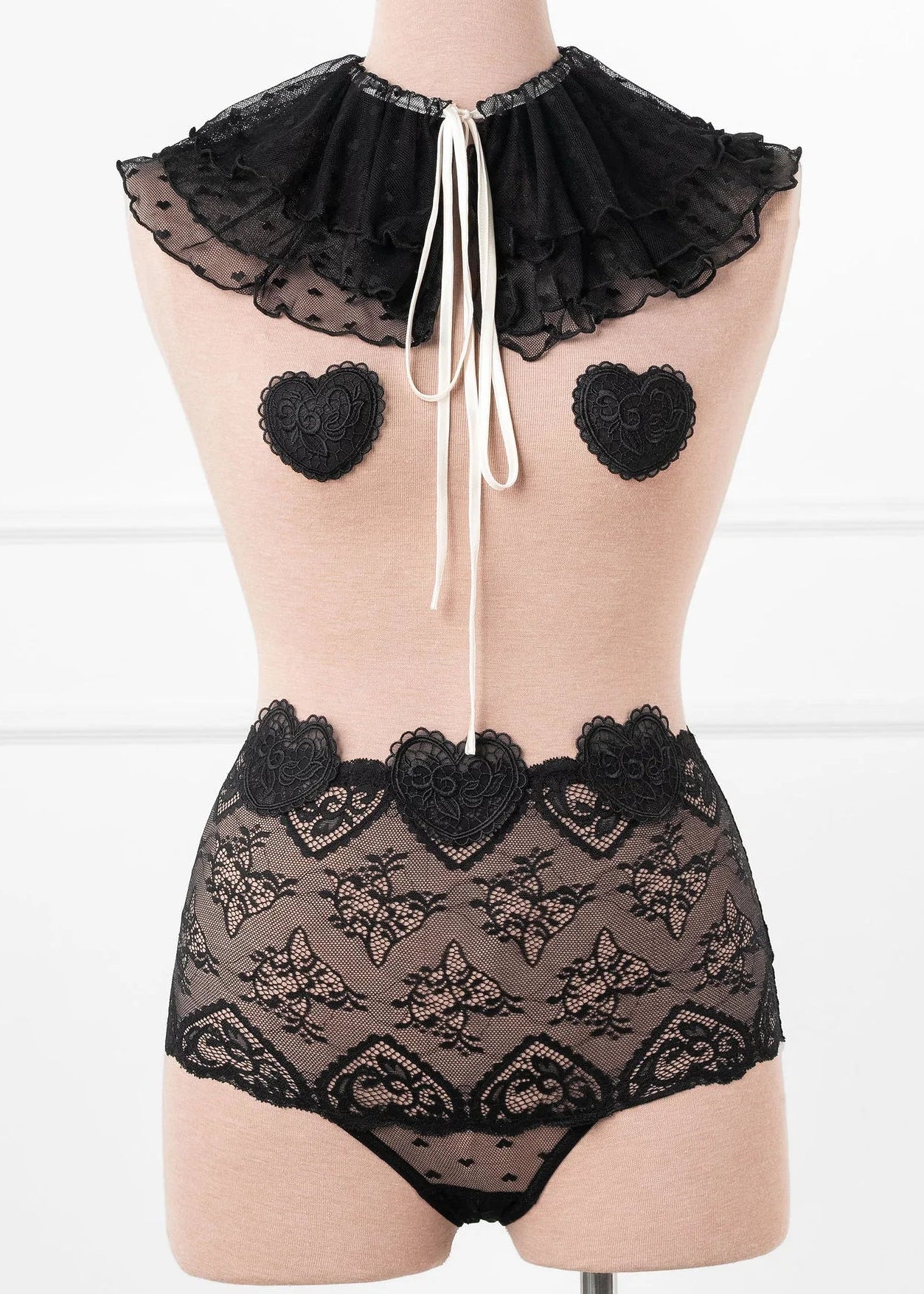 A cheeky little power move. This hipster panty features flirty heart appliqués and a crotchless design, making it equal parts playful and daring. Pair it with our lingerie collar and custom heart pasties and become a queen who plays by her own rules.