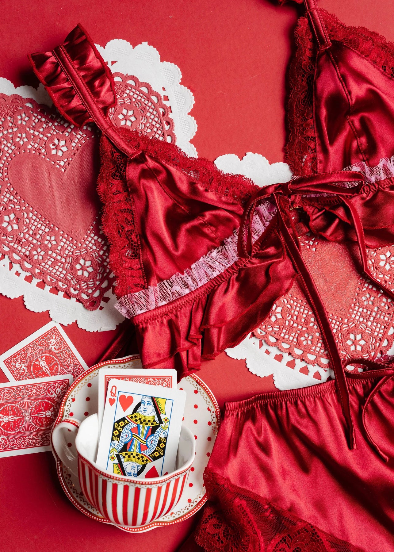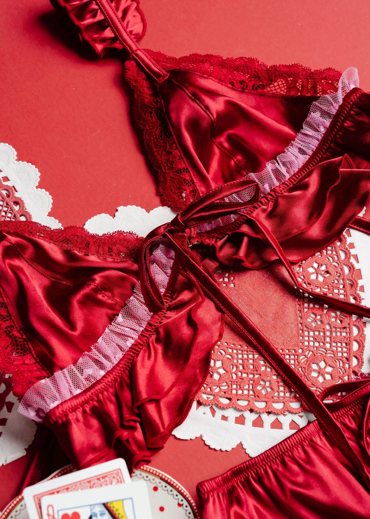 Heart mesh ruffle details